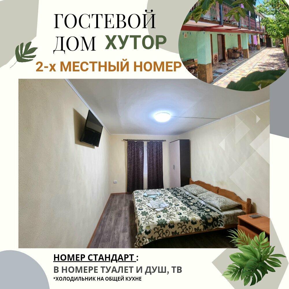 Отличное место для отдыха. В центре, все рядом детская площадка, рынок, столовая. К морю идти 5 минут. На территории ‘Хутор’ есть всё для отличного отдыха:прекрасная большая столовая, посуда, электроприборы, мангал, казан, беседки, песочница. Отдых удался на славу