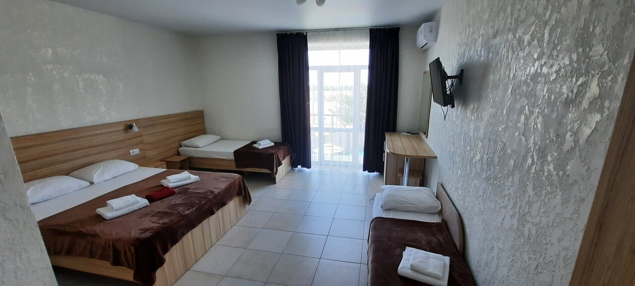 Отдыхали компанией, с детьми. Всем очень понравилось! На территории чисто, уютно, есть детская площадка, бассейн для взрослых и для детей . Номера чистые, есть всё необходимое (полотенца, минибар, кондиционер и тд ). Отдельное спасибо столовой! Такой вкусной еды мы не ели даже в дорогущих ресторанах ! Еда домашняя, все свежее, красивая подача салатов как в ресторанах . Чек за один прием еды был около 500 руб на троих. Возле бассейна есть бар, где можно заказать вкусные алкогольные и безалкогольные коктейли, кофе , чай и тд Ночью ничего не мешает сну, на территории тишина , посторонних звуков от города или трассы не слышно т.к. отель находится в спальном районе . До центра города или моря пешком идти 5-7 минут. Однозначно следующим летом приедем ещё. Персонал -самые вежливые и приятные девушки у которых можно попросить все необходимое . Спасибо за такой теплый прием , мы влюбились в это место всем рекомендуем !!!!! Идеальный отдых для взрослых и детей.