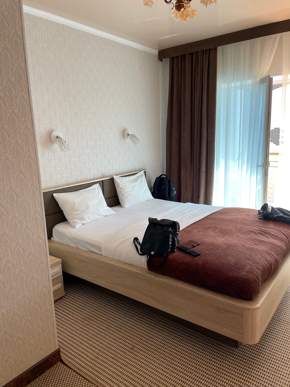 Очень хороший семейный отель, чистые и уютные номера, приветливый персонал, хорошая придомовая территория с беседками и бассейном .Советую (мы приезжали отдыхать из Курска)