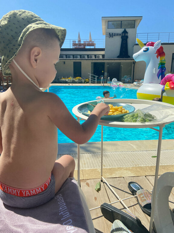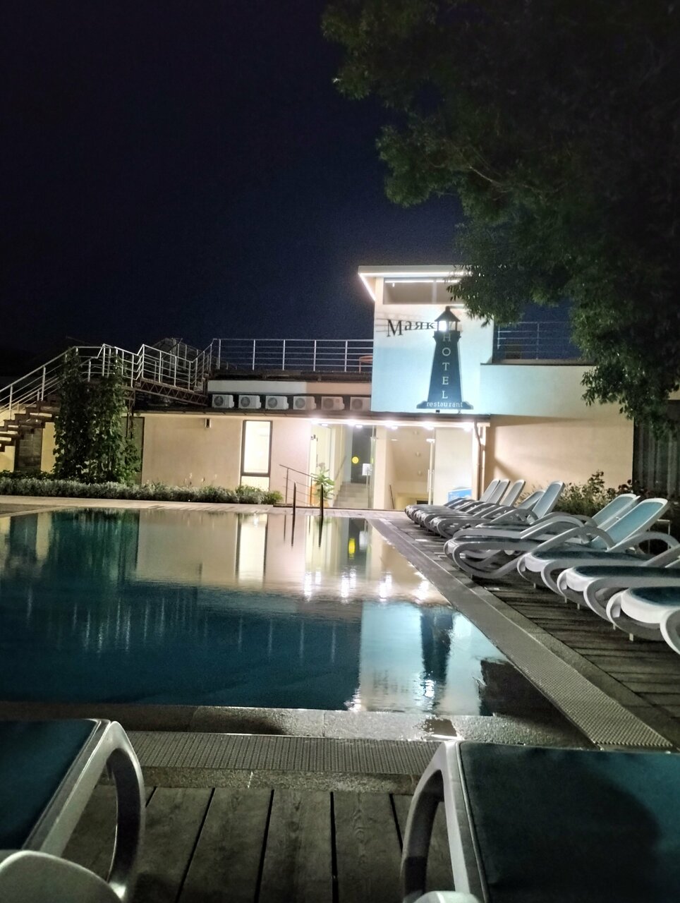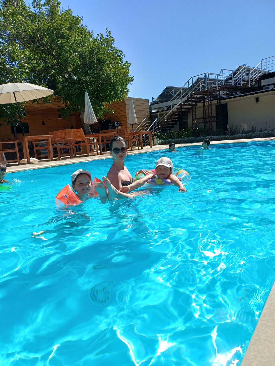 Хорошее место для спокойного отдыха, отдыха с маленькими детьми. Обслуживание достойное, всё самое необходимое предоставляется. Завтрак, входящий в стоимость проживания, хороший(многообразие блюд + выпечка, фрукты). Море близко, чистое, вид из окон (2 и 3 этаж) классный. Из минусов — ценник для посёлка, и не обогревающийся бассейн