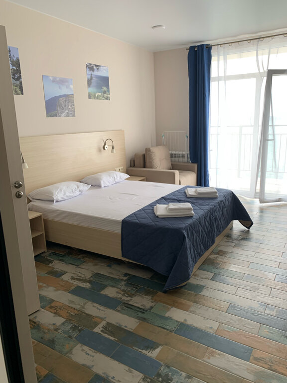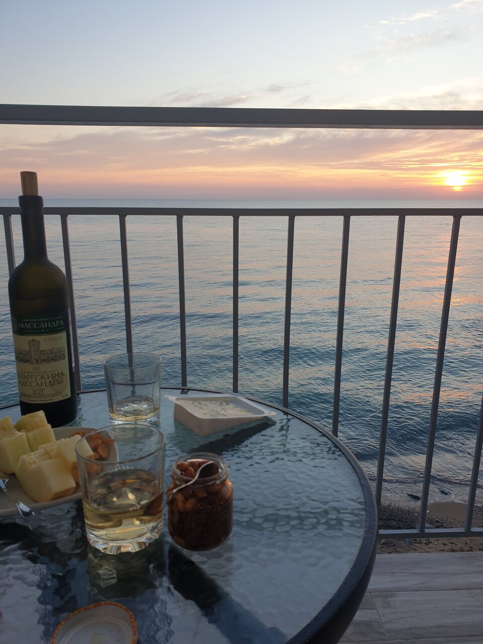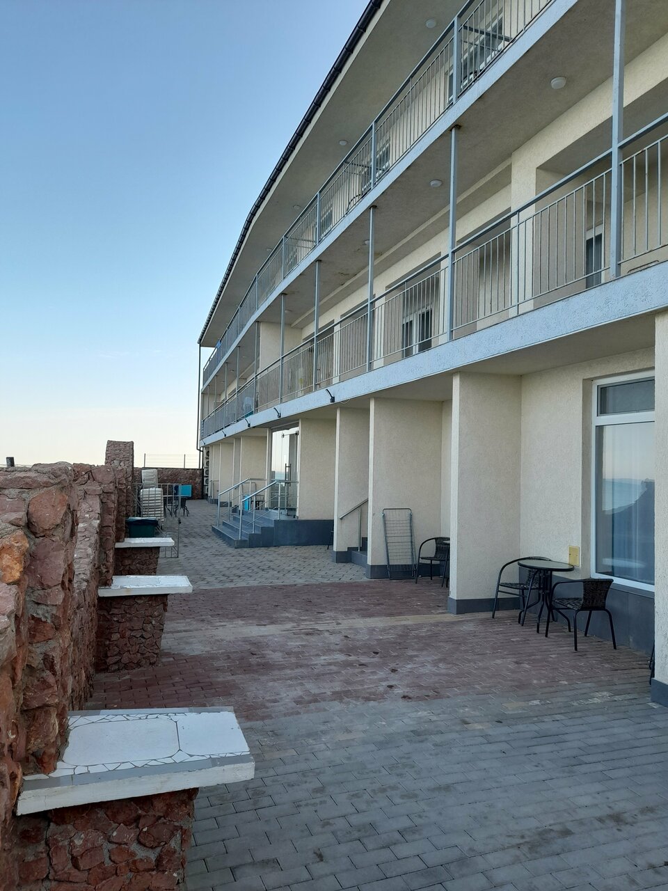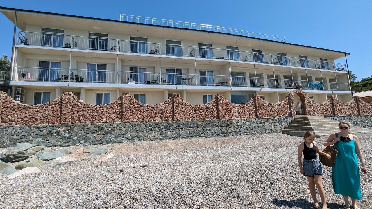 Лучшее место! Идеальная чистота и ежедневная уборка. Отзывчивый и приветливый персонал. Новая мебель, мягкий матрас. Но самый большой плюс — море в самой что может быть близи. Пару ступенек и ты на море. Засыпаешь под звук моря, просыпаешься под звук моря. Не забитый любит пляж, не чувствуешь себя в Крыму, кажется что ты на популярном иностранном дорогом курорте. Увидела фото и сразу забронировала, ни разу не разочаровалась! Кухня высше похвал, хотя ценник не высокий. До всех популярных мест, если вы на машине не далеко. ХОбязательно вернёмся и не раз