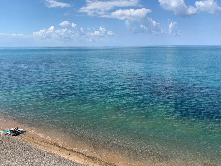 - Чистый пляж с мелкой галькой, лежаки включены.