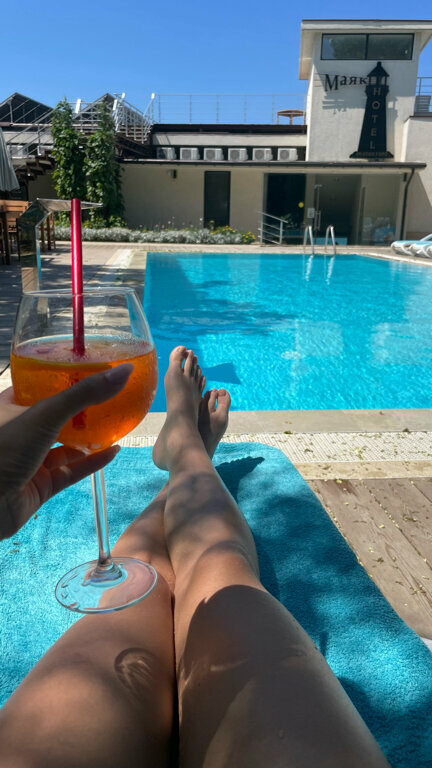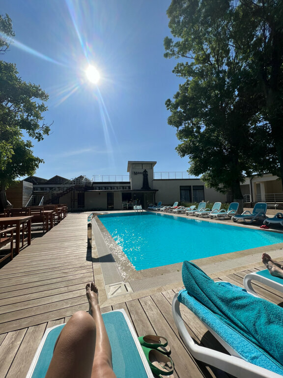 Хороший отель. Номера после ремонта, мебель новая. Чисто, уютно. Свой пляж, море в 10 шагах от отеля. Хороший бассейн. Кухне особый респект. Завтраки бомба, брали и обеды и ужины. Всё на высоте. Цены приемлемые. Для Крыма сервис очень хороший. Для тех кто любит тихий отдых подходит 100%. Отель вдали от алкопутей и шумных движух.