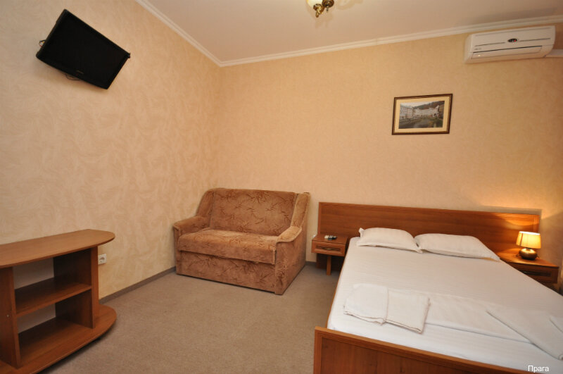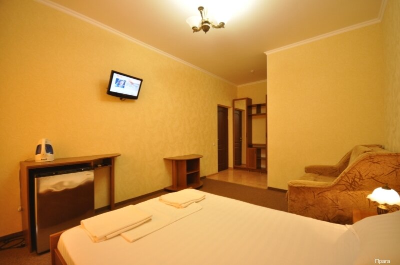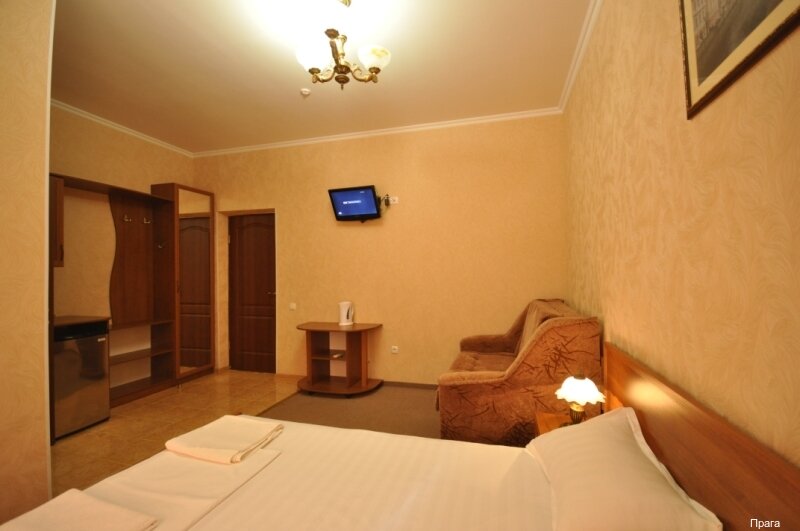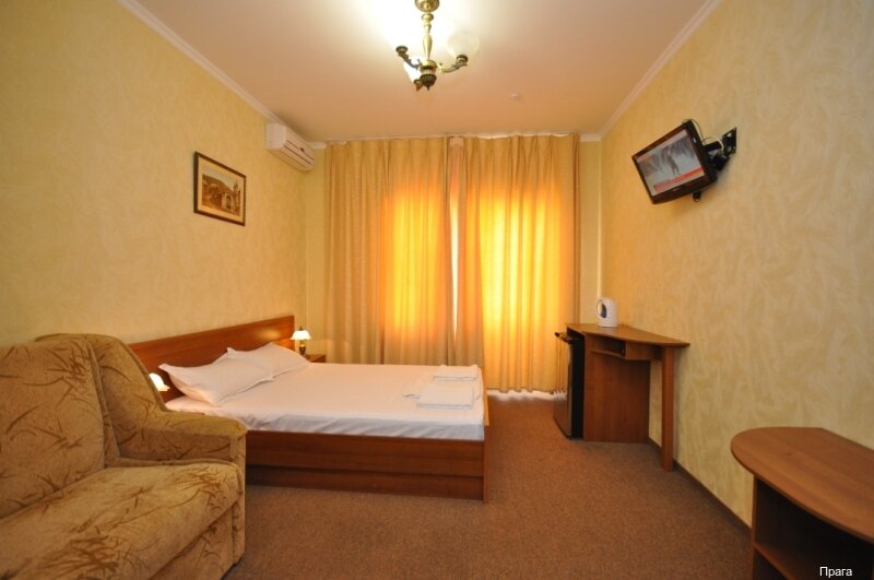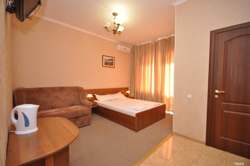 Отель ‘Прага’,уютный гостевой дом, добродушная и гостеприимная хозяйка Анна Иосифовна,демократичные цены,всегда убрано,чисто,смена белья и туалетной бумаги.Вкусная столовая(обращаю внимание,что еда в оплату номера не входит).Можно с маленькими животными,можно сидеть на веранде и завтракать.Неудобства:нет парковки,пожалуй все.