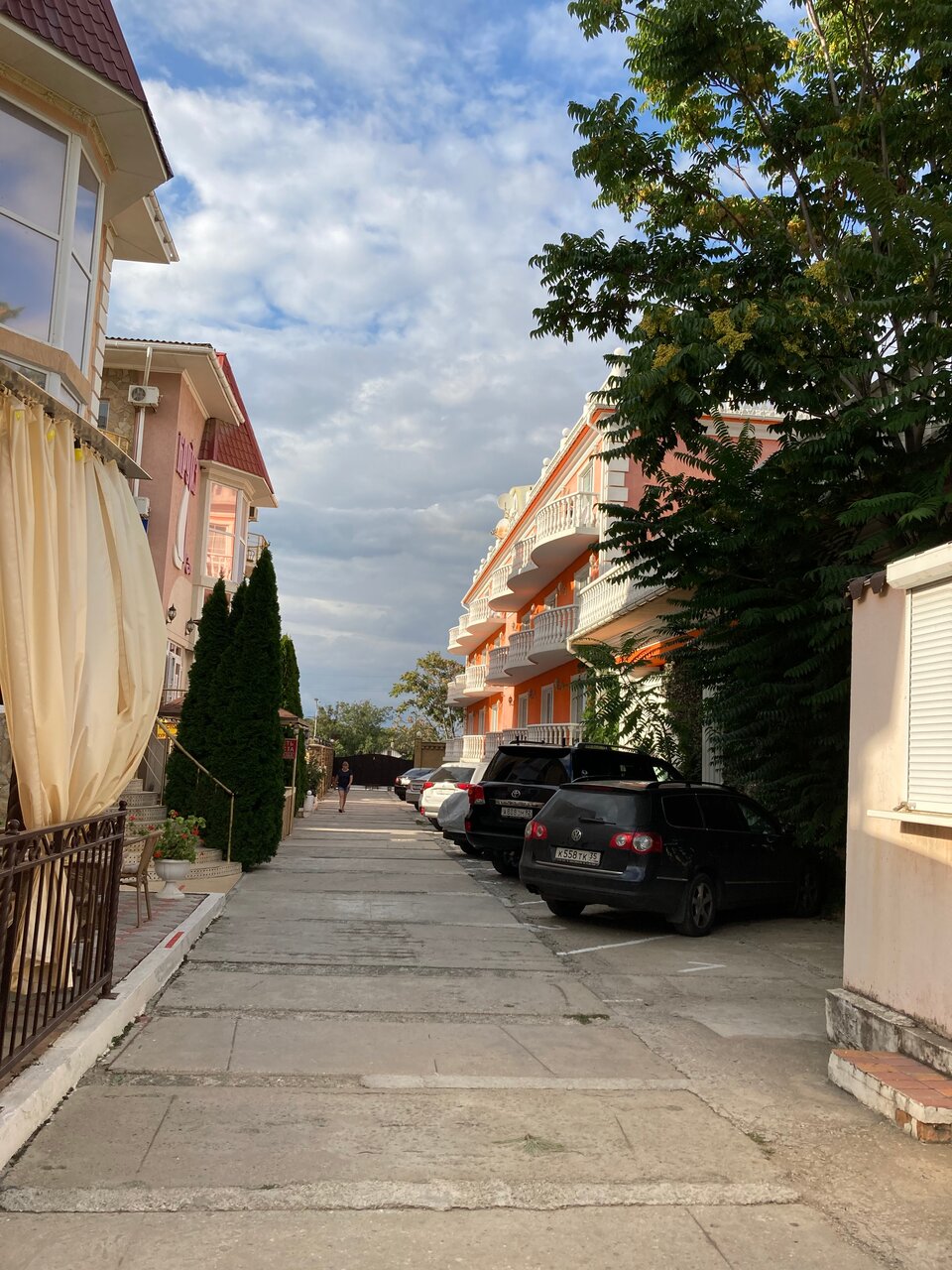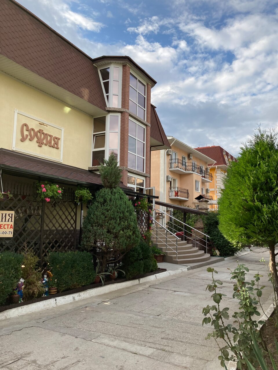Хороший, недорогой отель, семейный подряд — хозяева сами работают в отеле, поэтому все достаточно чисто, уютно и вкусно — есть свой ресторан. До моря близко, пляж песчано-галечный. Отдыхали в мае 2021 — было очень прохладно. У хозяйки отеля взяли в аренду машину и ездили в Севастополь, Ялту, в общем южный берег Крыма очень красивый, дворцы, исторические памятники поддерживаются в хорошем состоянии и уникальная природа. Дорога занимала много времени, но тем не менее отдыхом остались довольны. В следующий раз хотелось бы поближе к Ялте, но там и цены другие. Если нужен спокойный отдых на море, то самое то!