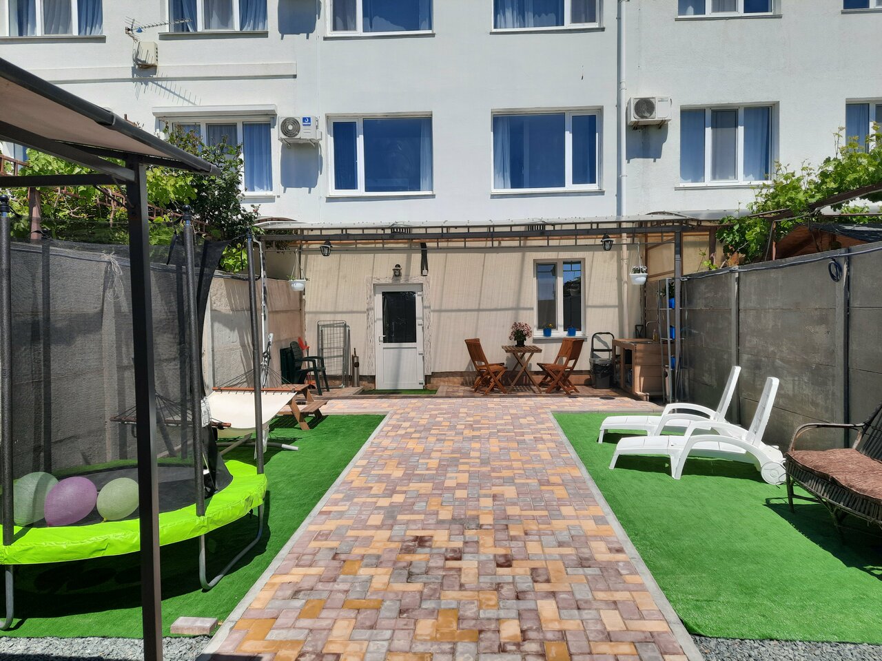 - Доброжелательные и гостеприимные хозяева.; Хороший свежий ремонт в номерах.; Чистые номера, свежее постельное белье и полотенца.; Наличие детской площадки, батута, гамака.; Удобный заход в море (на некоторых пляжах).