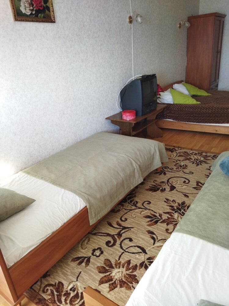 Останавливались тут всей семьей. Доступная цена. Номера после ремонта. Все свежее чисто очень. Кормят тут же домашними обедами в соседнем эллинге. В самом номере все условия как дома. Кухня, раковина, холодильник, чайник, посуда, свч, можно готовитьь при желании самим. Пляж в 70 метрах, но каменистый, по всему блищлежащему побережью есть несколько пляжей. Полно кафешек. Магазинчиков сувениров. Нам очень понравилось. Машину тоже есть где поставить. Окружение адекватное. Можно посидеть в беседке и у моря. И во дворе. Шашлыки пожарить например. Вобщем мы в восторге Есть кондиционер. Тв. Отличная ванная комната. Постельное белье. Полотенца все выдается. Молодцы. Спасибо большое за наш отличный отдых