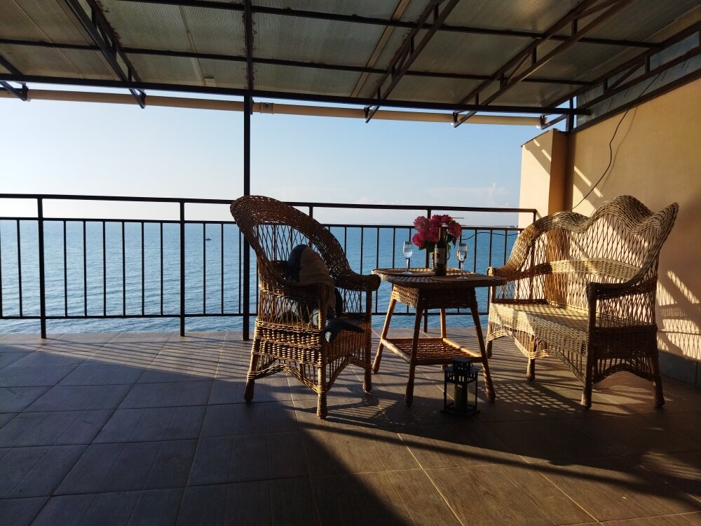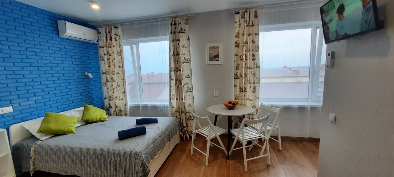 Отдыхали с 09.07.2022 по 16.07.2022. Вдвоём с мужем, заселились в номер с видом на море. Вид из панорамных окон замечательный! Кондиционер практически не включали, открывали окна и наслаждались морским ветерком и звуками моря. Квартира-студия с хорошим свежим ремонтом, дорогой сантехникой, холодильником, микроволновкой и индукционной плитой, хотя готовили всего пару раз. Завтрак нам готовили в соседнем эллинге, мы забирали еду и уходили на палубу, расположенную на берегу моря, встречали утро на берегу моря. От эллинга до моря идти меньше минуты. Берег каменистый, но заход камушки с песком. Недалеко есть пляж песочный. Рядом много кафешек, магазинов. Фрукты покупали на местном рынке. Все понравилось! Спасибо Екатерине и Виталию