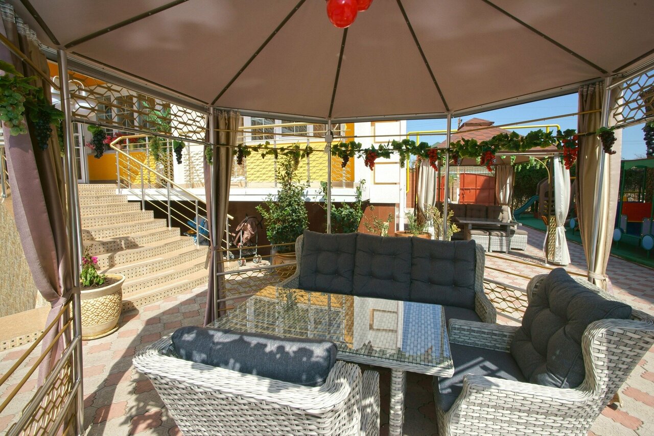 Хочу сказать огромное спасибо Галине Егоровне и всему обслуживаещему персоналу отеля, все было на высшем уровне. Встретили нас с женой, как родных, отвели в номер, который оборудован сплит системой, холодильником, чайником, туалетными принадлежностями. Номер большой просторный с огромной кроватью и асем необходимым. Питание тоже на высоте , мы выбрали обед и ужин, в блюдах есть выбор на усмотрение посетителя, меню продумано на 10 дней (потом повторяется). Зал для приема ищи на цокольном этаже, отлично оборудован( на обед подают вино) Двор тоже продуман до мелочи, есть бассейн с подогревом для детей,всегда чист и ухожен. С балкона номера(он выходил на дорогу а не во двор) хорошо видно море, а вечером приятно отдыхать любуясь звездами. До моря тихим шагом минуты 3 ходу. Отдельное спасиба водителю Денису, который пунктуален как швейцарские часы, в осуществлении трансфера. Огромное спасибо за приятный отдх.