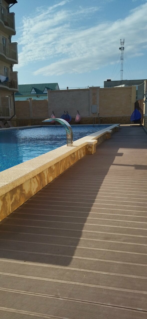 Отличный отель для семейного отдыха, новый и современный. Отзывчивый персонал, огромный бассейн, детская площадка. Всё рядом, всё под рукой до моря две минуты.. В планах заехать в сентябре ещё, рекомендую всем..