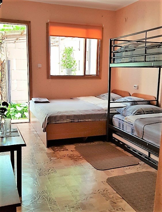 До ближайшего места купания метров 500, до центра минут 10 неспешно. Номер с кондеем, душ, туалет, Тв. Матрасы и подушки удобные. Хозяйка доброжелательная и внимательная. Инет в номере работает.