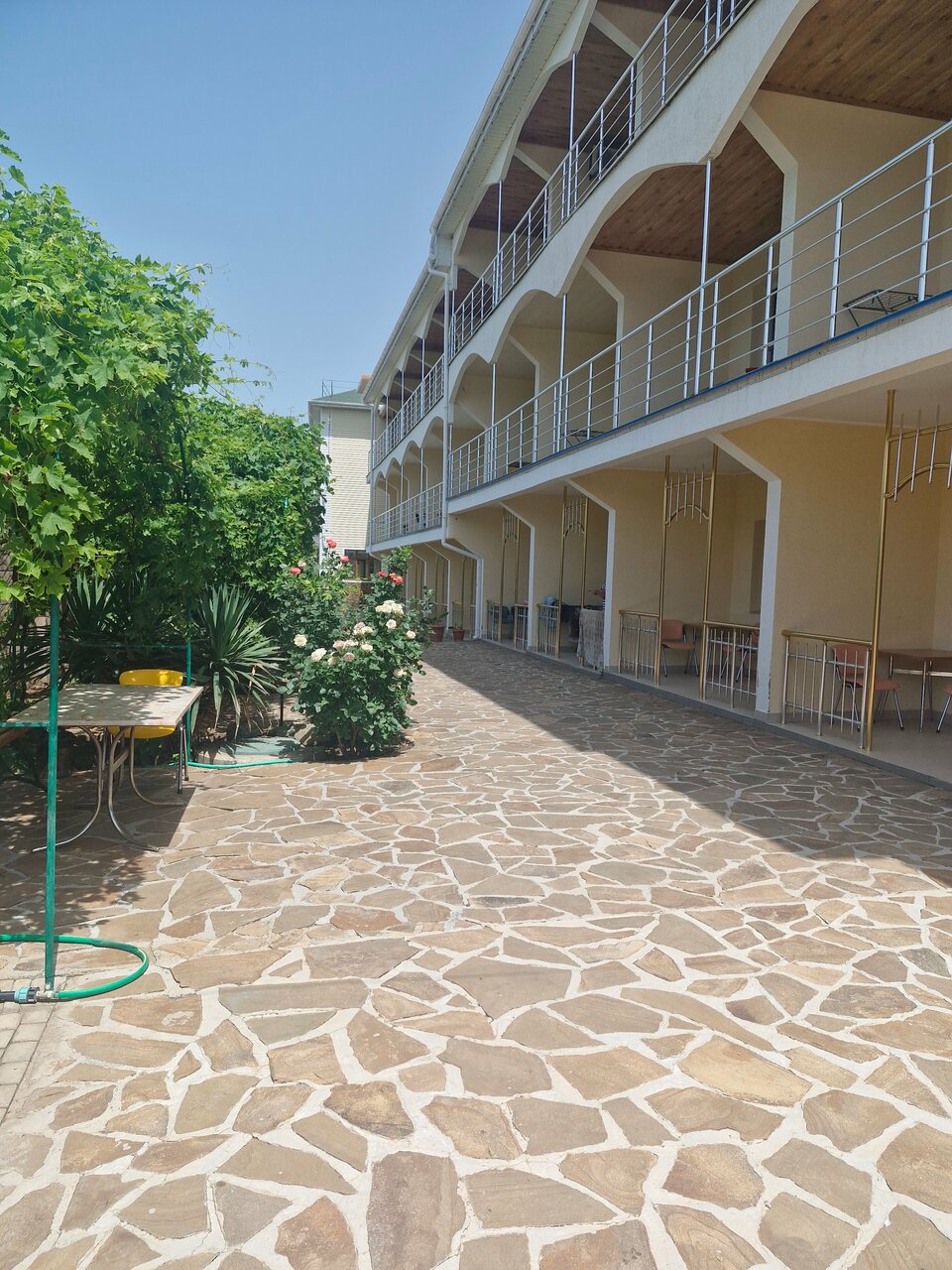 Удобные номера, закрытая территория, беседка с мангалом, в общем есть все что нужно. И да! Очень близко от моря! Очень удобное место для отдыха с детьми.