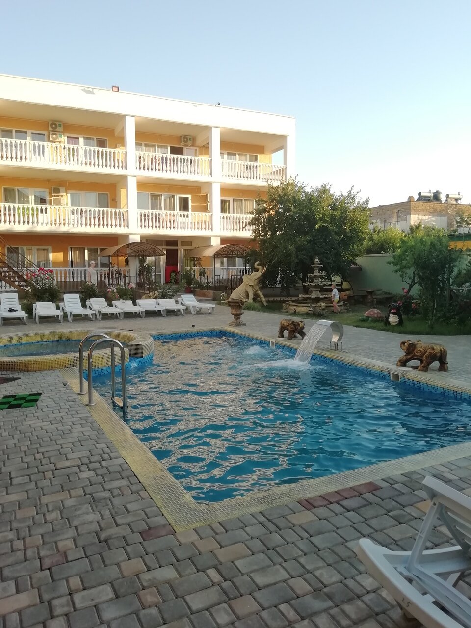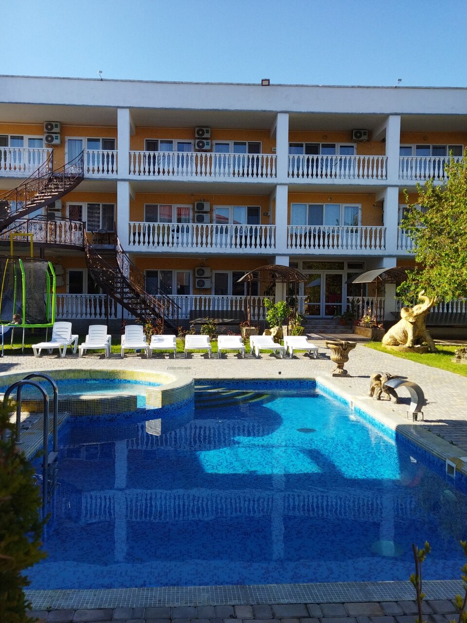 Очень хорошее место для семейного отдыха. Мы с ребёнком каждый год встречаем там день рождения. Все очень приветливые и дружелюбные. Коллектив отзывчивый даже очень. Бассейн двухзонный с джакузи. Есть общая кухня где можно приготовить самому а также можно заказать и в столовой где очень вкусно и цены достойные. К небольшому минусу можно отнести пока что неудобное расположение пляжа,но если вы с детьми ка мы поверьте за неделю вы можете ниразу на пляж не сходить!