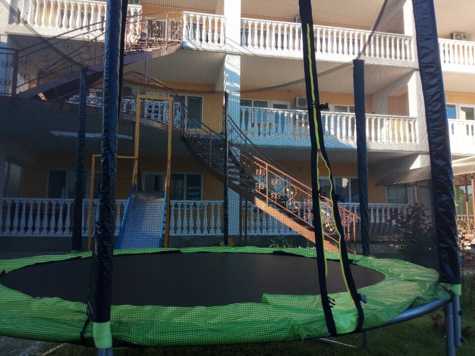 - Удобное расположение (недалеко от моря).; Развлечения для детей и взрослых (настольный теннис, футбол, спортзал).; Вежливый, доброжелательный и ненавязчивый персонал.; Хорошее место для семейного отдыха.; Детская комната, игровая площадка, батут.