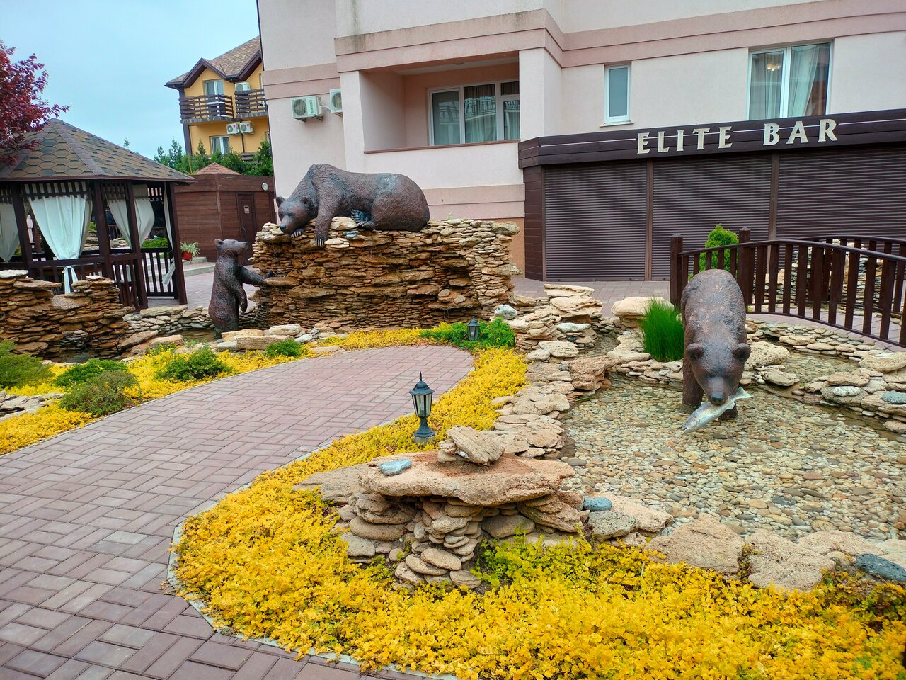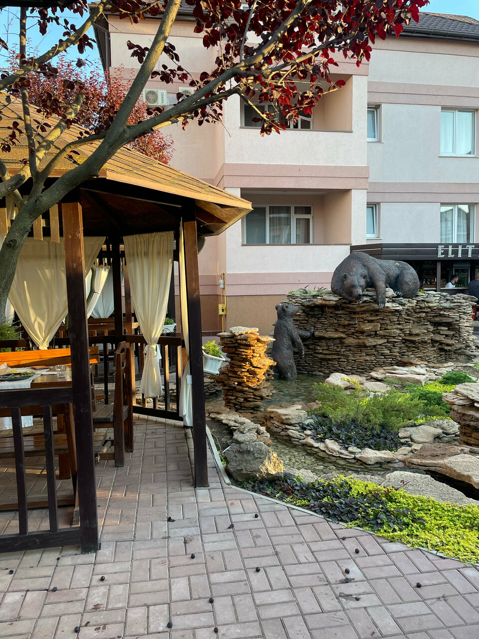 Пишу отзыв только о кафе Элит, так как в нем не Дили, а только приходили вечерами ужинать! Беседочки очень милые, удобные! Меню мангала вкусное всё!!! Мы перепробовали все позиции и они на самом деле вкусные, да ещё и с таким ценником! Вообще в Новофедоровке не так много приличных мест, где поужинать, особенно с мангалом, но именно Элит рекомендуем!! Также приходили к ним на завтрак, стоимость была 350 рублей с человека, дети вроде до 6 лет бесплатно! Шведский стол, на выбор каша, гарниры, яичница, сосиски, овощи, фрукты, блины, запеканка или сырники, сыры, колбасы, йогурты, пирожные, сухофрукты..,вообще всего хватало для того чтобы выбрать что позавтракать, в том числе с детками и по цене это хороший вариант!
