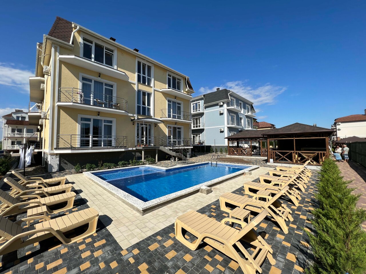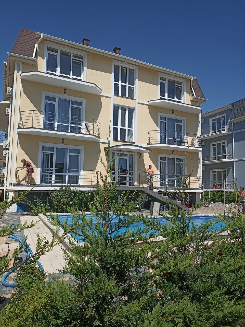 Прекрасный отель! Новый, добротно оборудован, видно, что со знанием дела делали! Удобная веранда, барбекю-зона, классный бассейн! Рядом с морем, несколько минут, хотя на море можно и не ходить)) все удобства есть при отеле! Приедем еще раз в сентябре!