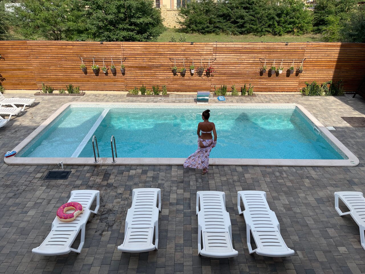 Прекрасное место, доброжелательные хозяева, шикарный бассейн,мангальная зона, магазин в двух шагах, до моря 10-15 минут, море чистое, развлечений много, отдых был шикарный. Спасибо большое Яне и Виталию.