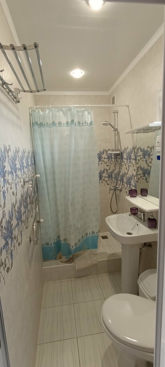 - Плотные шторы в номерах.; Хорошее расположение (рядом магазины, кафе, столовые).; Удобства для детей (кроватки, стульчики).; Стабильный интернет, вода, свет.; Близость к морю (7–10 минут пешком).