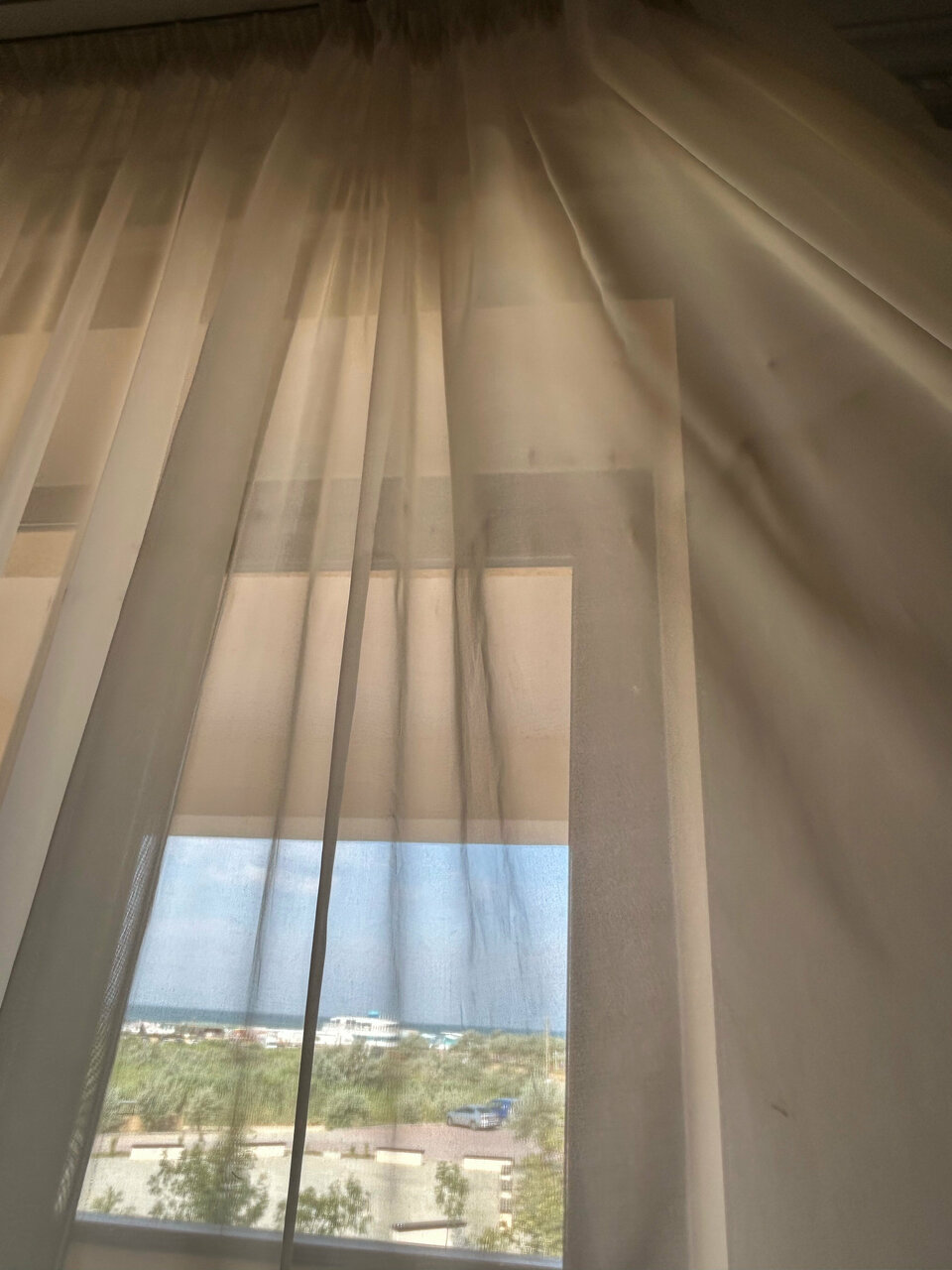 Приехали на 2е суток в этот отель. Хочу начать сразу с плюсов. Очень вежливые, приветливые администраторы. Одна из них( жаль не запомнила имени) успокоила меня ночью, когда включили систему оповещения ракетной опасности. Я немного почувствовала себя в безопасности Номер современный, матрасы отличные, балкон безопасен для маленьких деток. Ухоженная территория с красивыми декоративными растениями. Минусы: столовая от отеля, которая находится на пляже. Завтраки были включены в стоимость и они очень разнообразны, но жаль что не вкусно. Мой ребёнок ничего там не стал есть. Отель находится в 5ти минутах от пляжа, до самой ночи будете слышать в номере музыку, караоке, аттракционы. Бассейн большой, но грязный. Много мусора и песка плавает. На балконах огромные пауки, которые заползают в номер