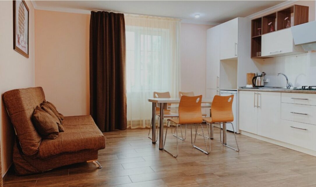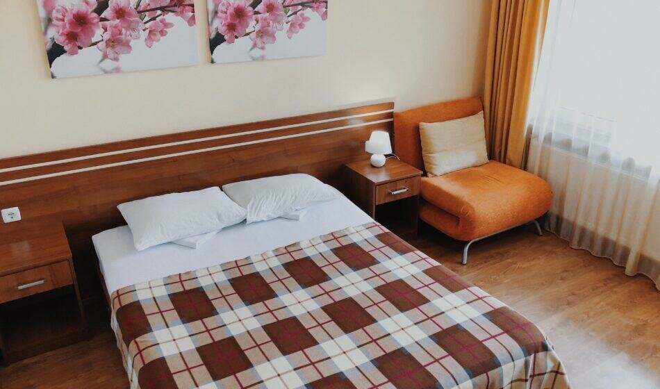 Отель предлагает комфортные номера от 1200 ₽ за ночь с кондиционером, Wi-Fi, телевизором, мини-баром и звукоизоляцией. Для гостей доступны гипоаллергенные номера, кухонные уголки, общая кухня и услуги няни.