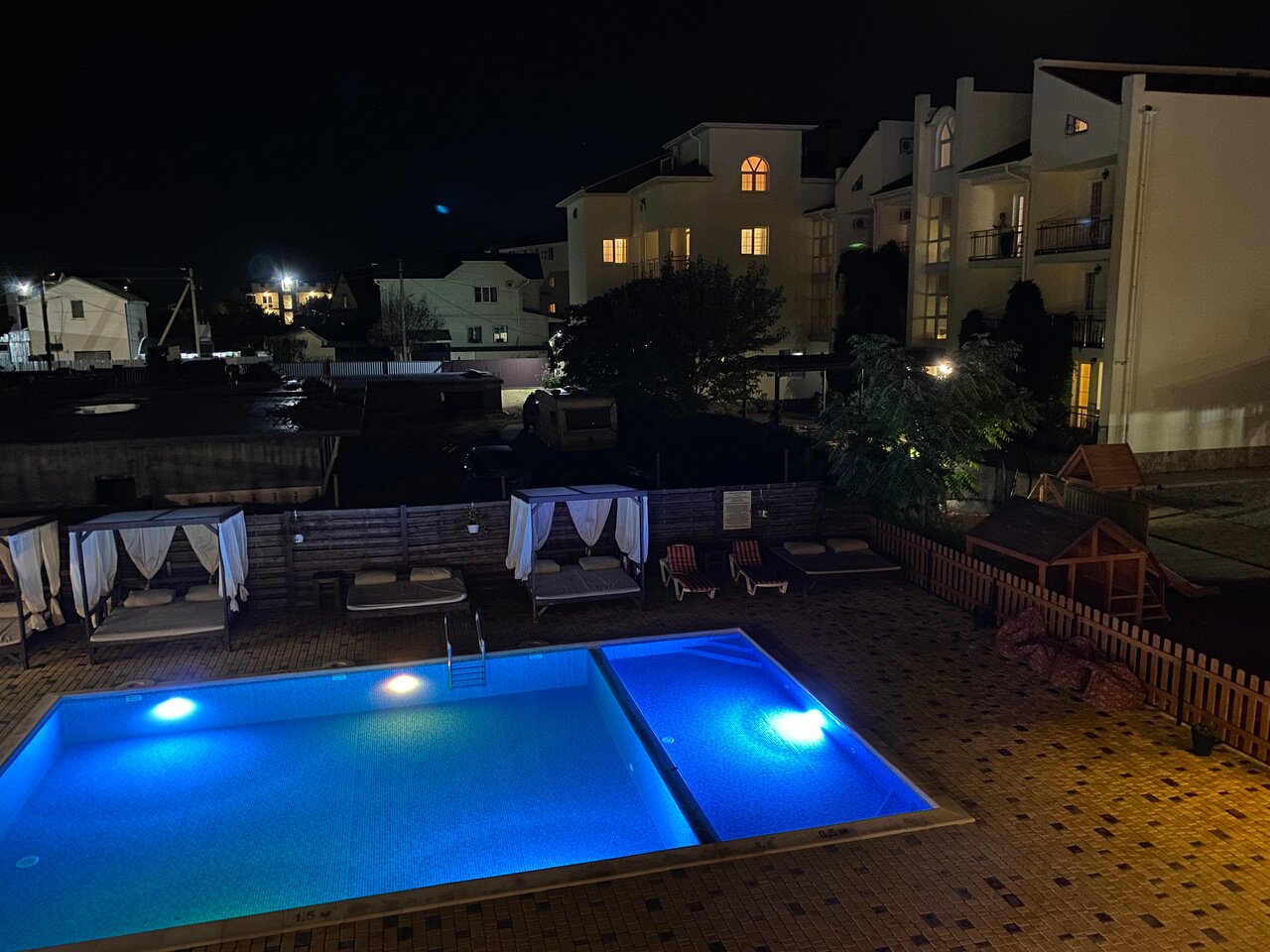 Очень понравился мини- отель. Чисто, просторно, уютно. Есть бассейн. При вечерам на улице транслируются мультфильмы для детей прямо на фасад здания