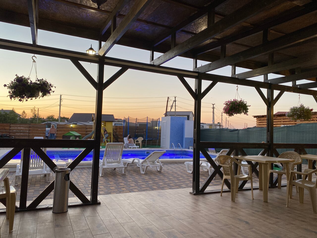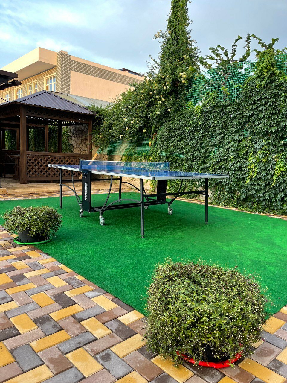 - Детская площадка, батут, теннисный стол.