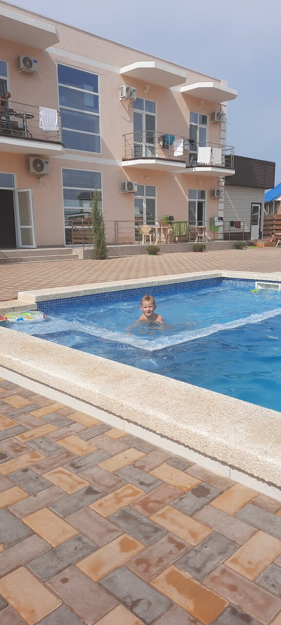 Замечательное место для отдыха рядом с морем. Внимательный персонал, отличная кухня. Террасы с зоной отдыха, мангальная зона, беседка с баром, бассейн с детской зоной купания, детская площадка с батутом толстые стены!) в номере кондиционер, холодильник. И по приемлемой цене! И это все в шаговой доступности от, по моему мнению, лучшего пляжа в Крыму и среди тех где я был. Остались очень довольны, приедем снова!