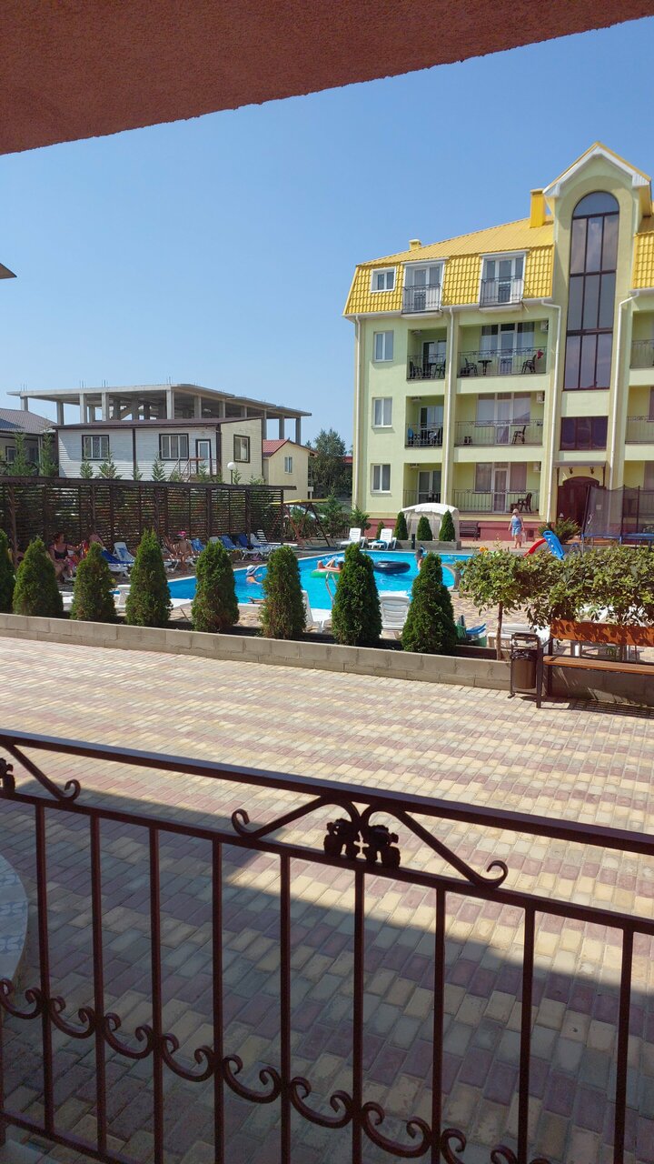 Отдыхали семьёй неделю в июле. Остались очень довольны! Есть условия для любого отдыха. Во дворе отличный бассейн с детской и взрослой зонами, есть мангал и столики, чтобы посидеть на улице. Номера чистые. Достаточно быстрый вай-фай, само собой в номерах кондиционеры, холодильники, просторные кровати. Санузел достаточно вместительный, душевая кабина удобная. Рядом пляж и хорошая столовая. Отдельно хочу отметить хозяйку гостиницы, Галину. Приветливая, вежливая, готовая помочь при различных проблемах. Обязательно приедем ещё!