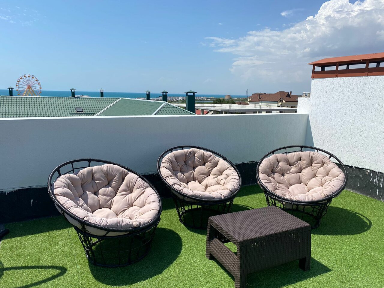 Опубликованы реальные фотографии. Проживали в номере студии. Все чисто, культурно, опрятно. На крыше оборудована зона отдыха и бассейн. Приятная в общении хозяйка Анастасия, поможет во всех вопросах. Очень удобное расположение, в шаговой доступности море, рынок, столовые, магазины. Рекомендую