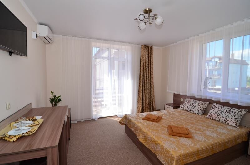 Хорошее место! Персонал очень вежливый. Вплоть до уборщицы. Все с вами поздороваются. В номерах убираются ежедневно. В номере приятно пахнет, удобные кровати, балкончик с сушилкой (после моря не нудно заморачиваться, куда повесить вещи сушиться). Так же есть маленький холодильник, телевизор и кондиционер. При желании можно отдать вещи в стирку. Если ещё поедем в Новофедоровку, в первую очередь будем смотреть жильё именно там!