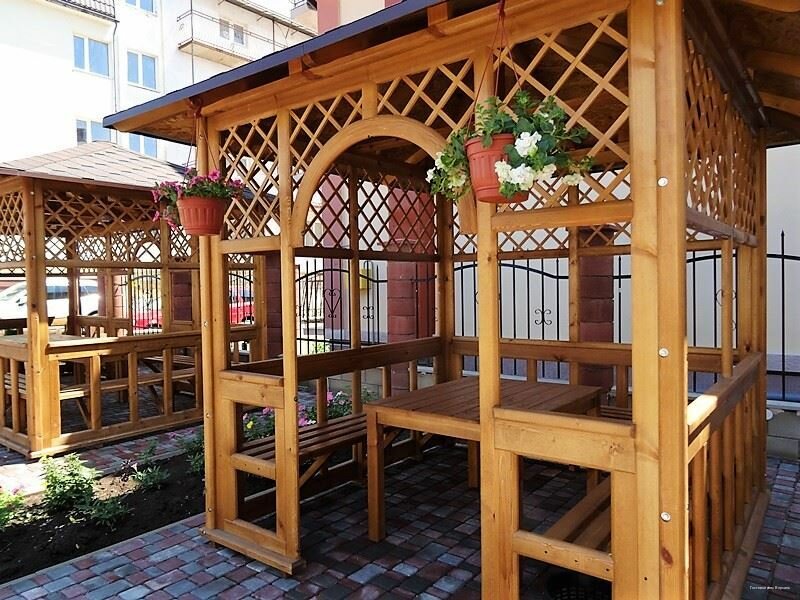 - Ухоженная территория (фонтан, беседки, качели, цветы).
