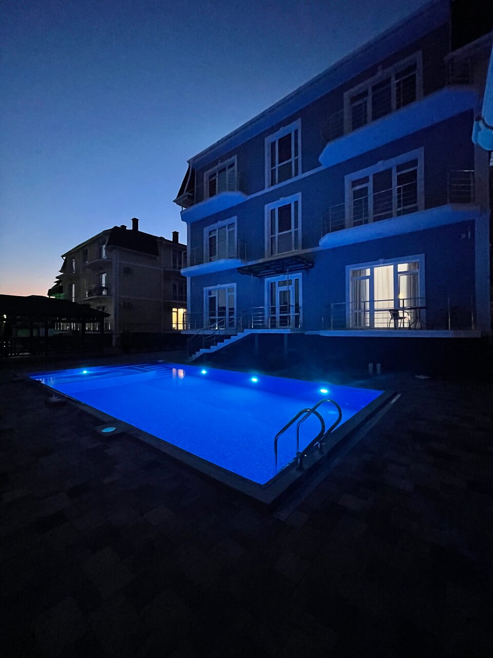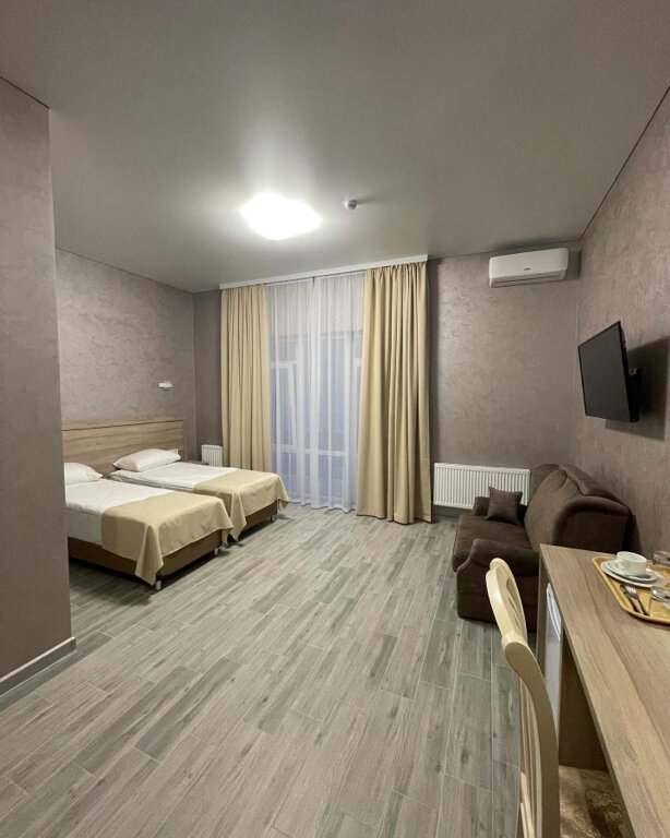 Отель новый, отличное местоположение… Номера большие и уютные. Все продумано до мелочей(даже фумигаторы в номере) Кулеры для воды в коридоре .Есть бассейн, кухня , мангал. Море очень близко (5мин) Очень радушные хозяева отеля. Рекомендую отель!!!