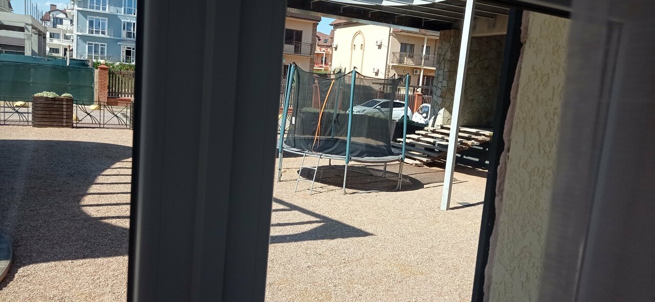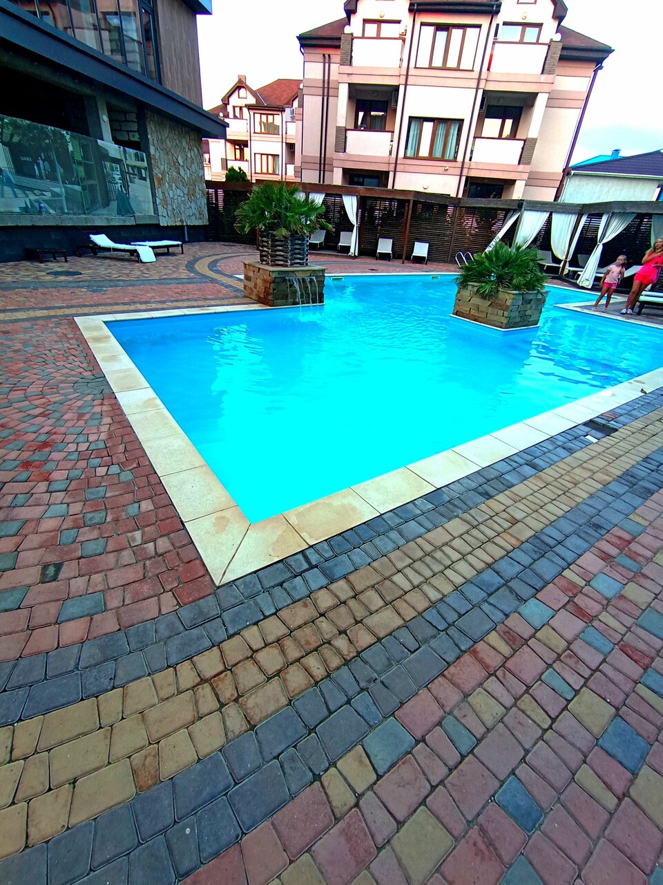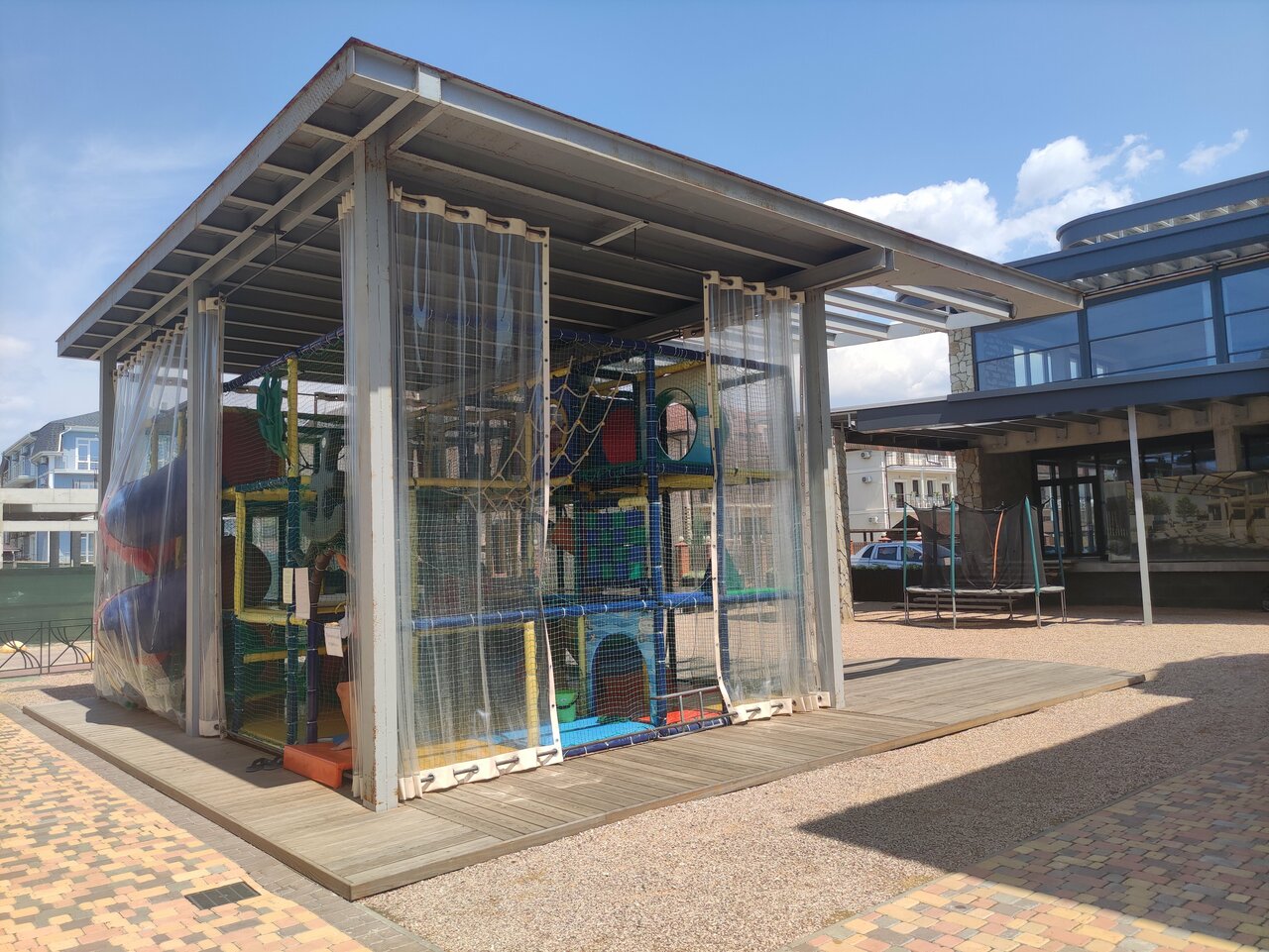 Прекрасный отель. Персонал молодцы, реагируют оперативно. Хороший бассейн. Комнаты чистые. Есть всё необходимое. Для детей организована площадка, аниматоры. Хорошая мангальная зона. Свой пляж, шезлонги, зонтики. Для пляжа отдельные полотенца. Один минус — нет питания. Ещё пожелание: возле бассейна организовать туалет.