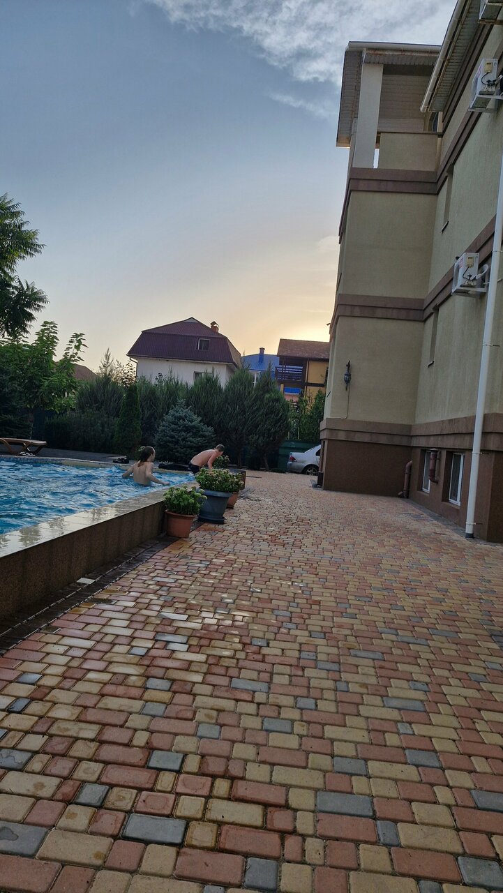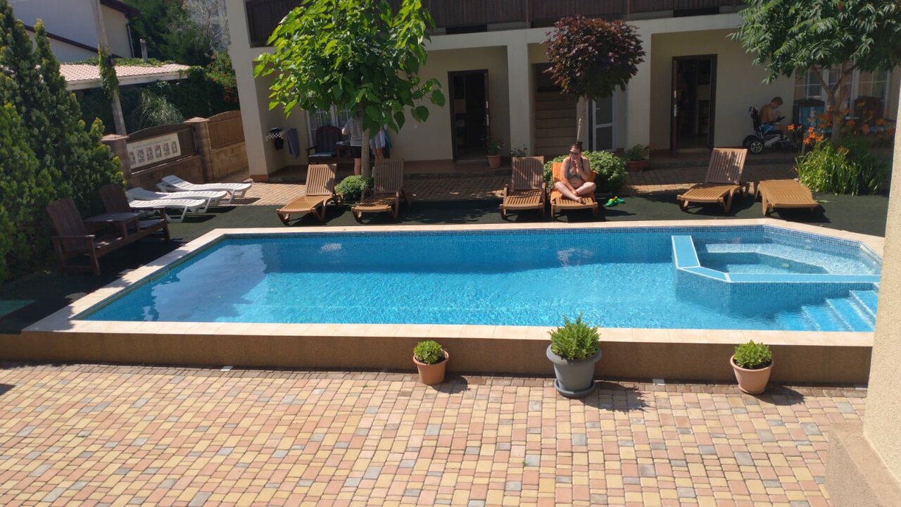 Доступная цена за проживание, бассейн на территории, беседки, близко море.