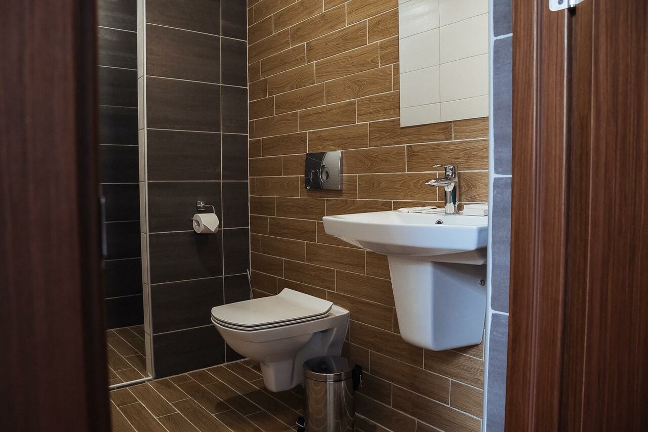Хороший отель, персонал вежливый внимательный, номера для ночлега на 5, чистота везде, еда в кафе вкусная, много выпечки, хлеб разный, советую.