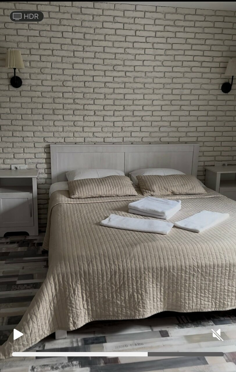Небольшая гостиница, чисто, очень удобная компановка номеров, если едите компанией, приветливый персонал, владельцы приветливые люди идут на встречу клиентам, територия закрытая есть свой двор, мангалтная зона столы во дворе под навесом, для отдыха с детьми очень подходит, подъезд машиной удобный, есть своя парковка, рядом магазины, до моря идти минут 7-10. Очень понравилось.