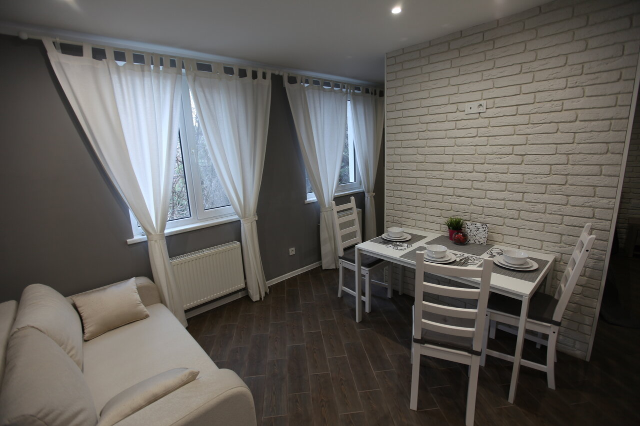 Очень достойно! Но не без минусов. Бронировал Студию 2+2. В номере есть кухня с плитой, посудомойкой, стиралкой и холодильником. Если приезжать на юг отдыхать на неделю-две — отличное место! Есть место для парковки во дворе. Из минусов: пятно от протечки на потолке. Очень не приятно засыпать смотря на него. Лейка в душе (замените на нормальную).