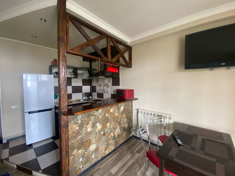 Прекрасный гостевой дом! Хозяйка приветливая и доброжелательная. Сняли в июне 2024 четырехместный номер Лофт для семьи: папа,мама, бабушка и девочка 2 лет. Места хватило всем. Всё рабочее и функциональное. Очень порадовало наличие кухни. Вся утварь для приготовления пищи есть. Нам с малышкой было это необходимо. Удивило и однозначно понравилось наличие гардеробной комнаты, она небольшая. Но когда мы разгрузить туда вещи, а чемоданы убрали под кровать, стало очень комфортно там находится и жить. Всё в шаговой доступности — магазины, автостанция, парковка, банкомат, рынок, столовая и кафе. До моря не далеко и обратно идти даже с ребёнком не сложно. На первом этаже есть мангал и огромный стол. Там можно и посидеть и шашлык пожарить. Рекомендую данный гостевой дом и сами будем гостями вновь и вновь)