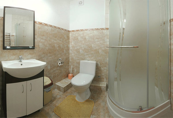 Двухместный номер со всеми удобствами. Туалет, душ, фен, холодильник, телевизор. С возможностью размещения до трёх человек.