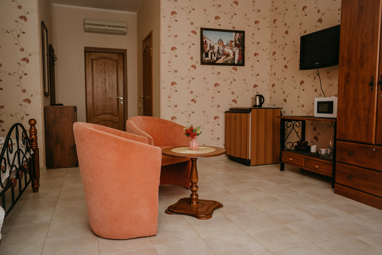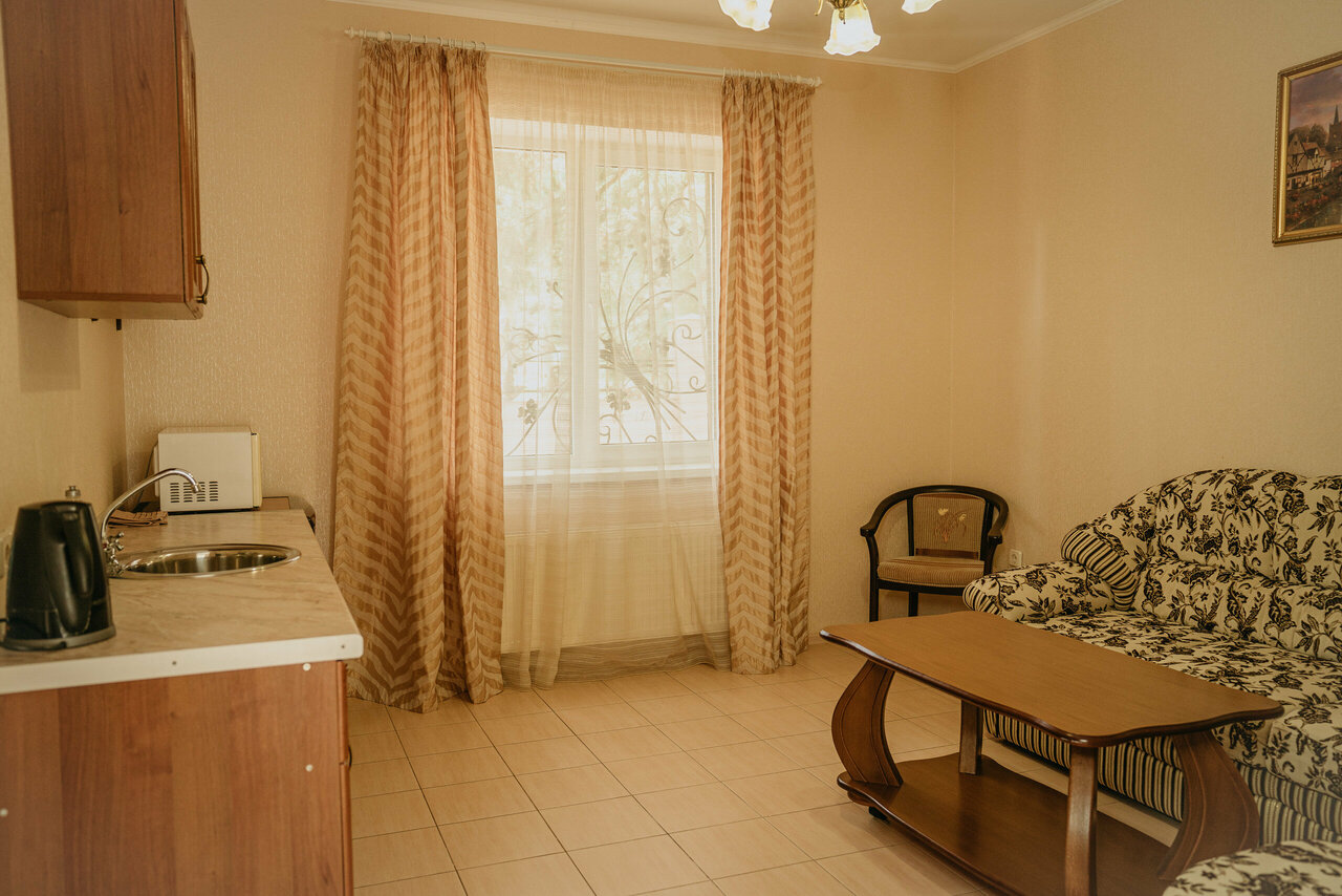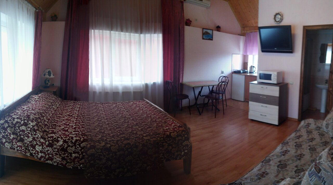 Прекрасный двухкомнатный номер с видом на море, чисто, комфортно. Это первый гостевой дом где есть кофемашина. В номере есть всё необходимое. Мы отдыхали 3 дня, но если бы была возможность остались бы ещё. Рекомендую!)