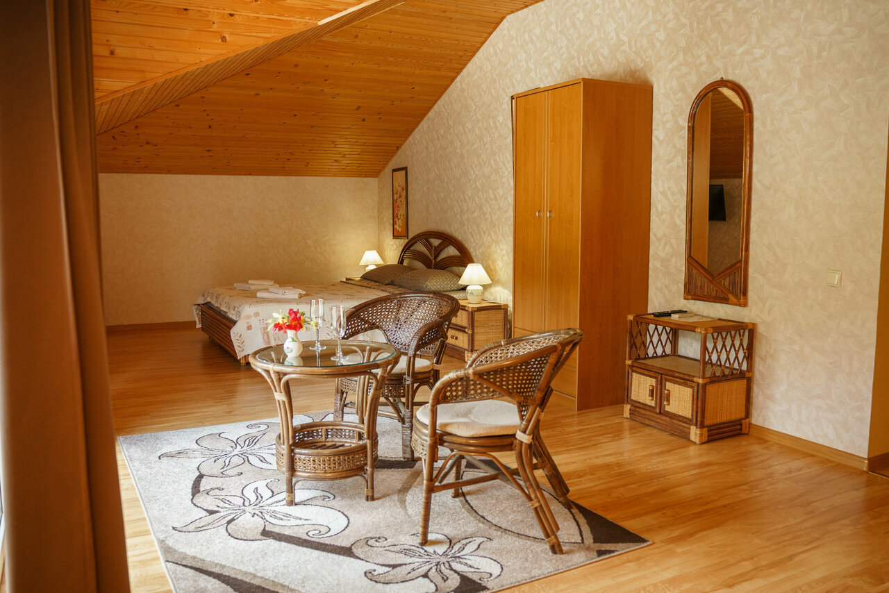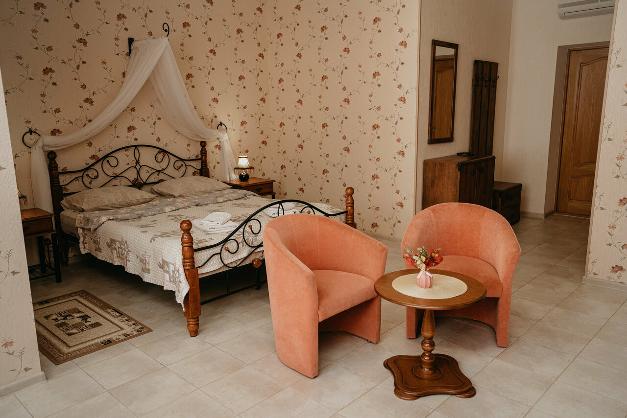 Небольшой отель, номера хорошие, ремонт свежий. Из минусов — нет развитой инфраструктуры, как у больших отелей (хотя для кого-то это и плюс). Очень тихо и душевно. Во дворе есть место для вечерних посиделок и мангал, чтобы пожарить шашлыки. Есть вай-фай.