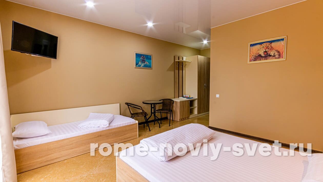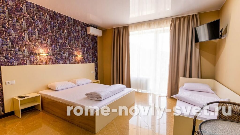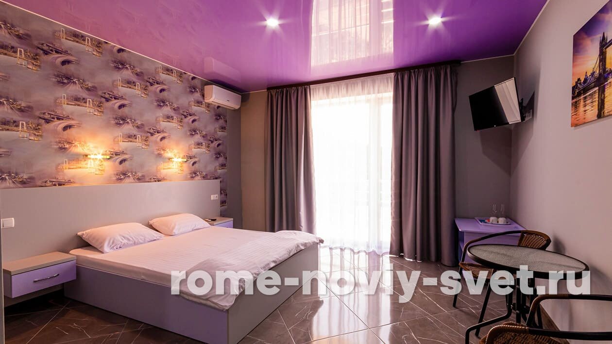Hotel Rome — современный гостевой дом в поселке городского типа Новый Свет, расположенный на Набережной улице, 18Б. Открыт круглосуточно, предлагает комфортные номера с кондиционером, Wi-Fi, санузлом, телевизором и холодильником.