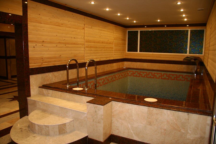 В инфраструктуре: собственный галечный пляж, крытый бассейн, spa-зона, 2 ресторана, бар, банкетный зал, сауна, хаммам и детская площадка. Доступны услуги трансфера, консьерж-сервиса и доставки еды в номер.