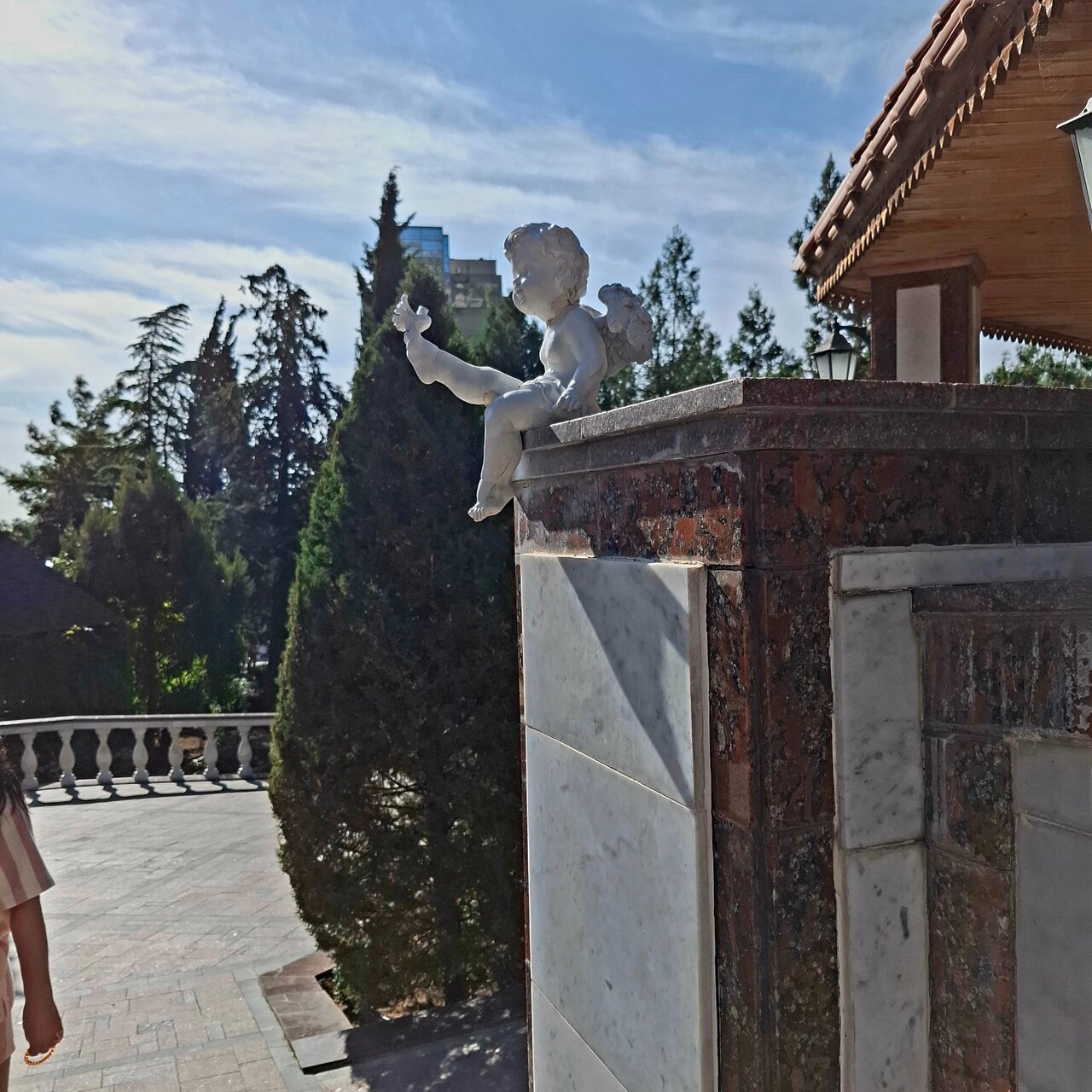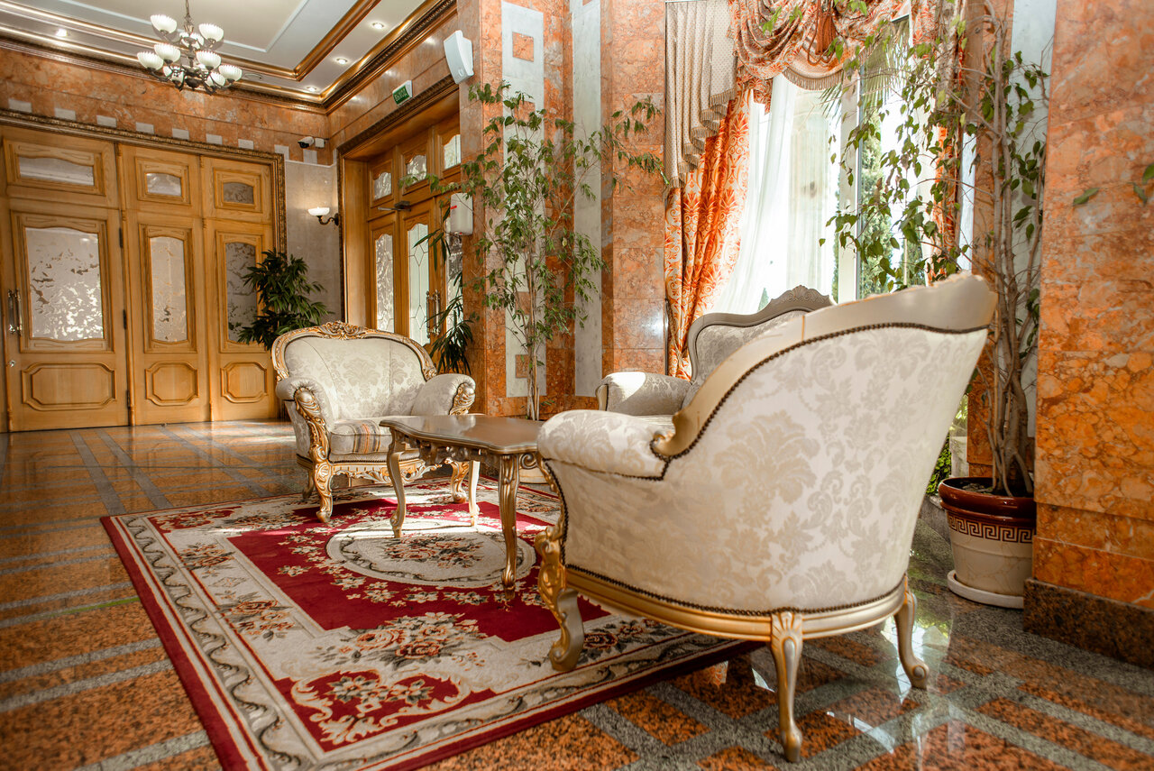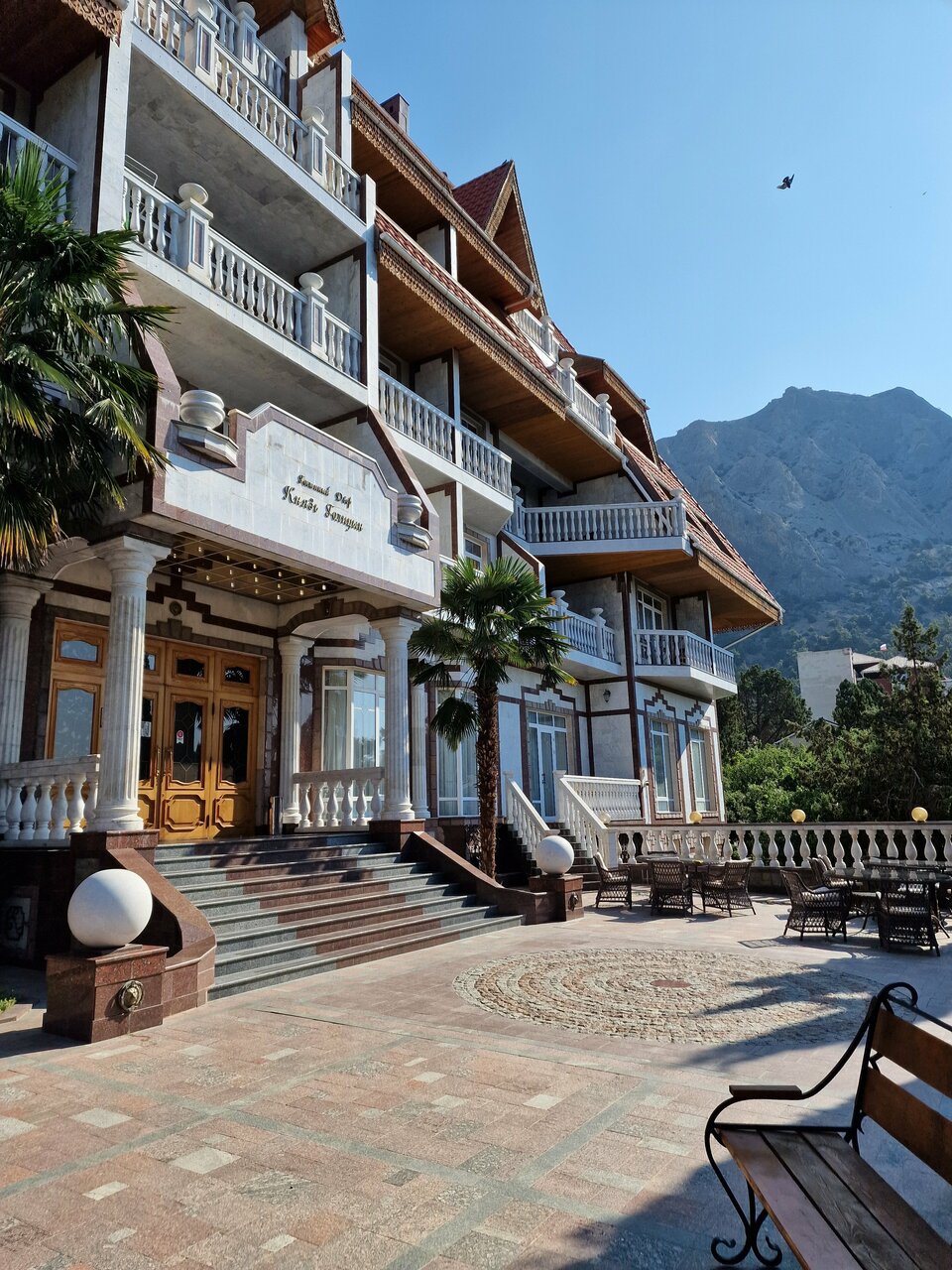 Красивая территория,есть беседки, тенистые дорожки. Вежливое обслуживание. Из минусов:нет парковки, завтрак ну совсем не соответствует количеству мрамора в гостинице) Интерьер на любителя, тут единого мнения быть не может. Плохо ловил wifi.