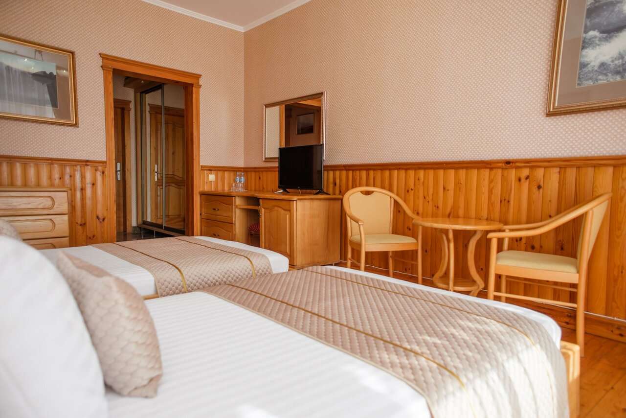 Однокомнатный уютный номер с двумя раздельными кроватями и видом на горы. Идеально подходит для одноместного или двухместного размещения.В каждом номере имеется балкон с мебелью, санузел с душевой кабиной, фен, шкаф-купе, сейф, телефон, тв.