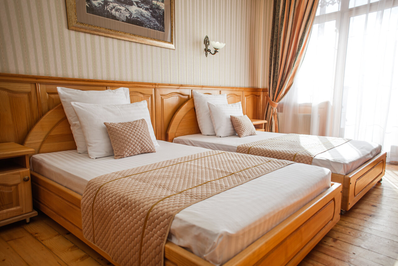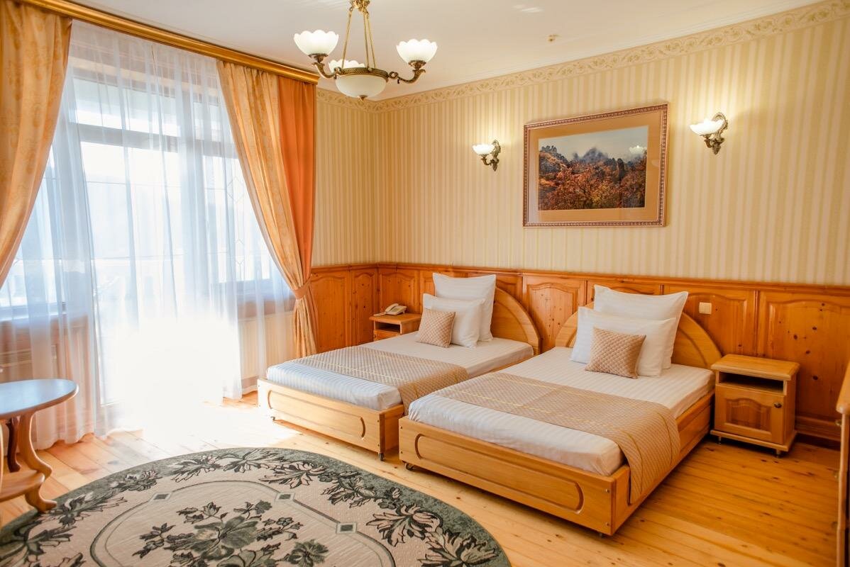 двухместный номер улучшенной планировки с двумя раздельными кроватями и видом на горы. Идеально подходит для двухместного размещения.В каждом номере имеется балкон с мебелью, санузел с ванной, фен, шкаф-купе, кондиционер, тв, телефон.