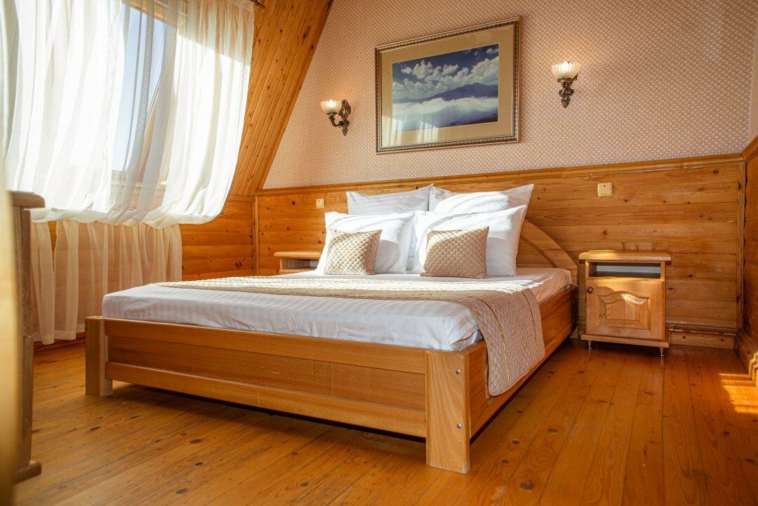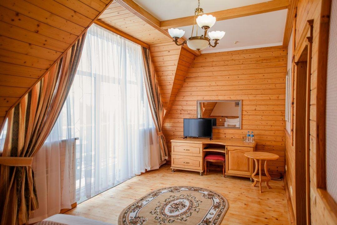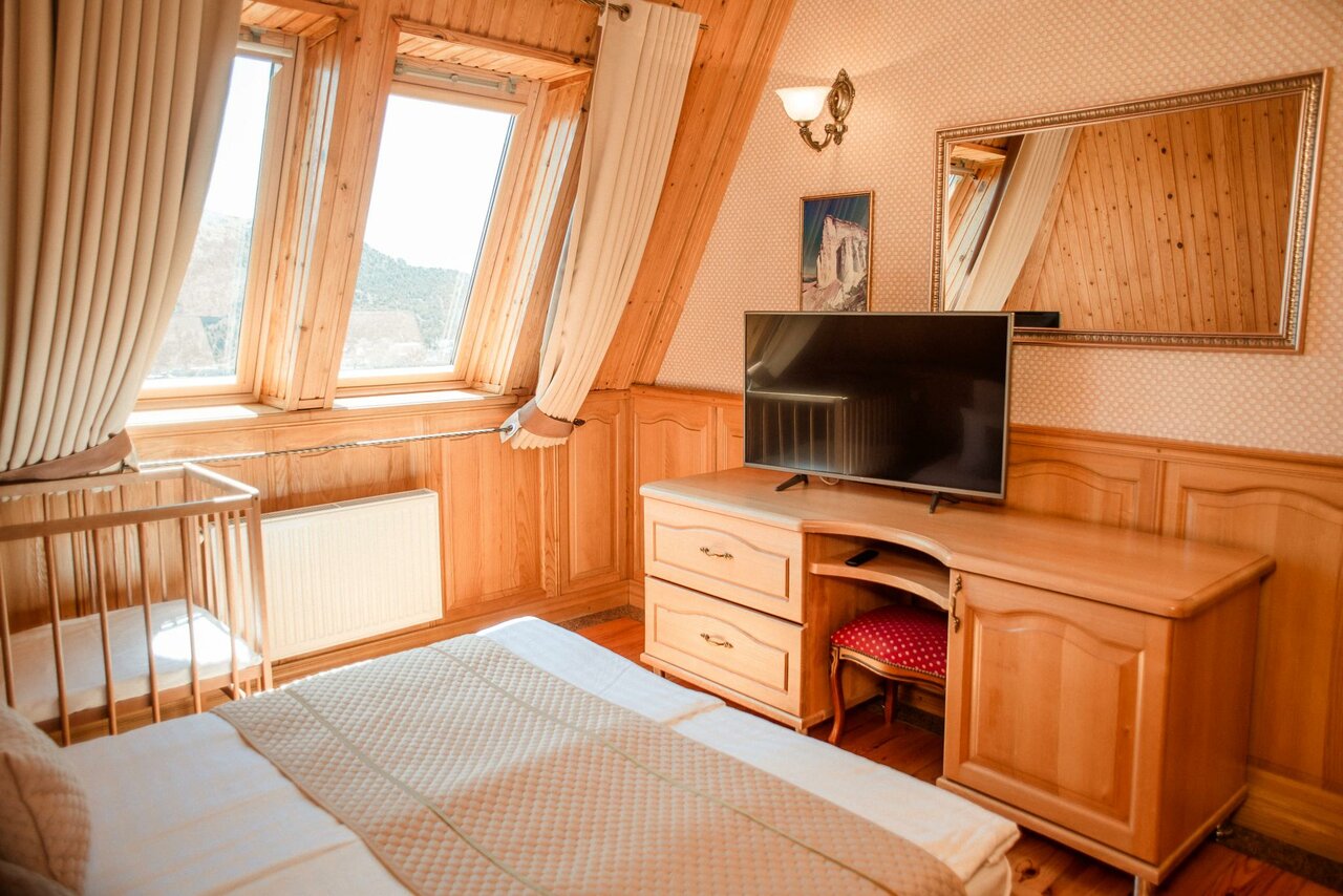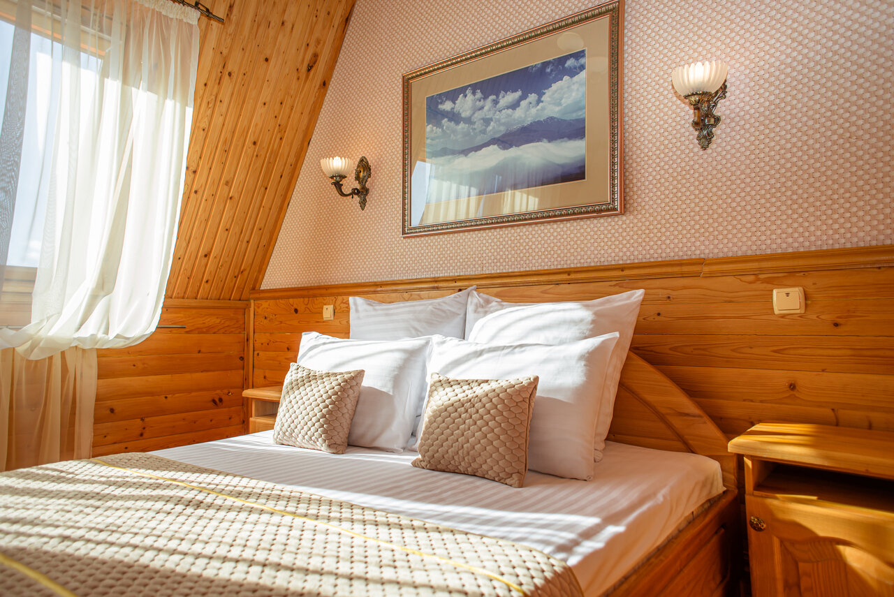 Однокомнатный уютный номер с одной двуспальной кроватью и видом на горы. Идеально подходит для одноместного или двухместного размещения.В каждом номере имеется балкон с мебелью, санузел с душевой кабиной, фен, шкаф-купе, тв, телефон.