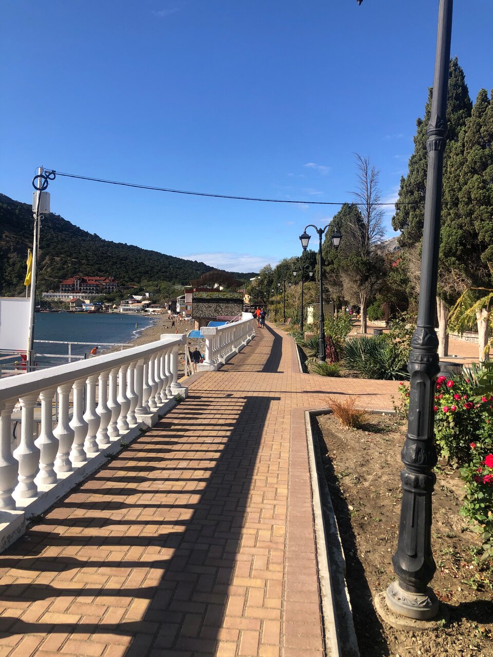 Нам достался номер с балконом и видом на море и гору. Хороший номер, всё работает, чисто. Есть халаты, тапочки. Очень приятно было перед сном посидеть на просторном балконе (а там столик и два кресла помещаются). Завтрак с большим выбором блюд, вкусный. Ресторан просторный. Вокруг отеля сосновый парк, перед отелем есть фонтан, скамейки и беседки в тени. Очень тихо и красиво. До моря 10 минут, при чем в отеле выдают пляжные полотенца, а на берегу есть свои шезлонги с зонтиками. Остались очень довольны, вернёмся обязательно.