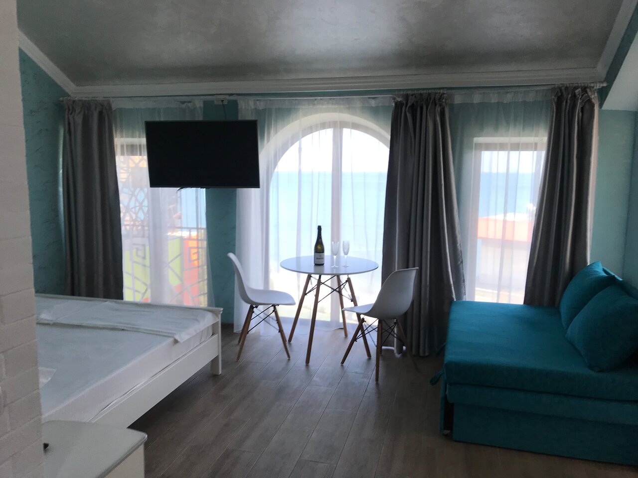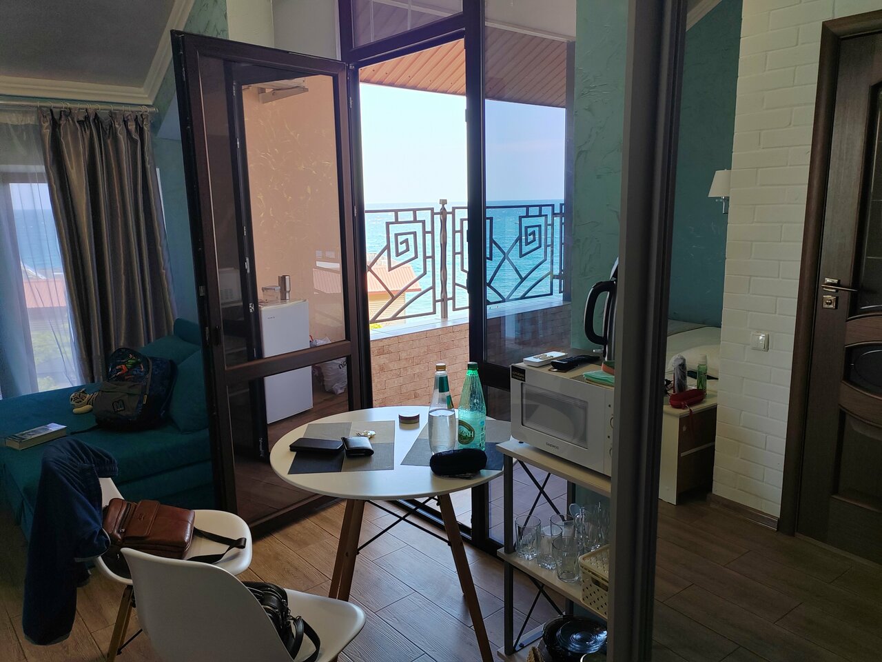 Отличная гостиница, рядом с морем. Прекрасно засыпать под шум моря, и просыпаться от морского воздуха. В гостинице есть всё необходимое. Телевизор,чайник. Тёплый пол. (были вне сезон, было прохладно) холодная, горячая вода, фен. Балкон с видом на море. Шикарное место, для отдыха. Обязательно приеду! 🙂