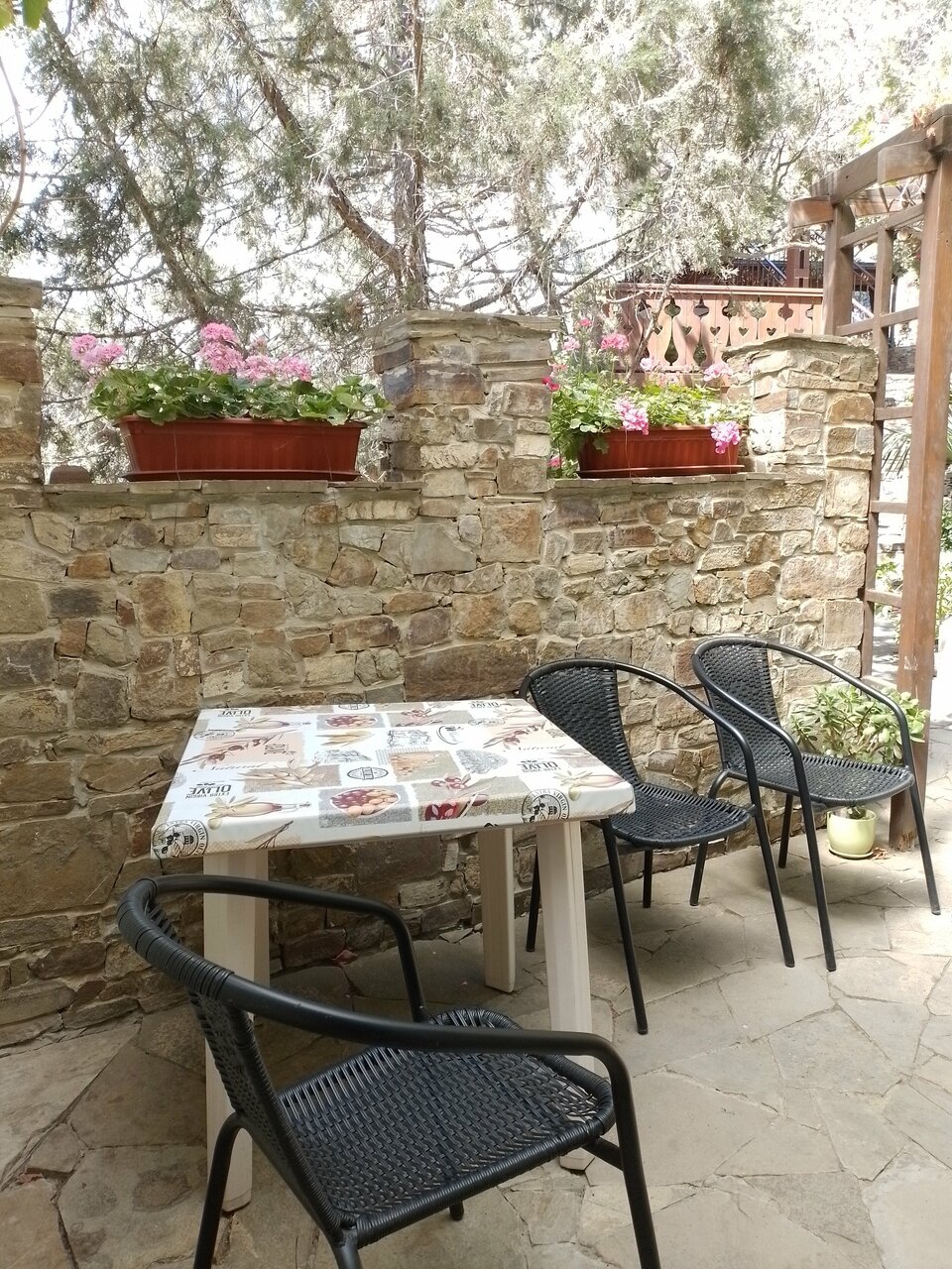 Все хорошо, чисто, очень красивые виды вокруг (горы, лес можжевельниковый начинается прямо от участка, очень красивый двор с террасами из дикого камня и беседками, цветами, плющом и др. растительностью) только Wi-Fi очень плохо работал, практически невозможно было нормально пользоваться ноутбуком, ну и дорогова-то для нас (3600, еще стирка в стиралке 300р), тут же рядом можно было снять за 2500-2000р, что мы и сделали, когда закончился нами оплаченный заранее период.